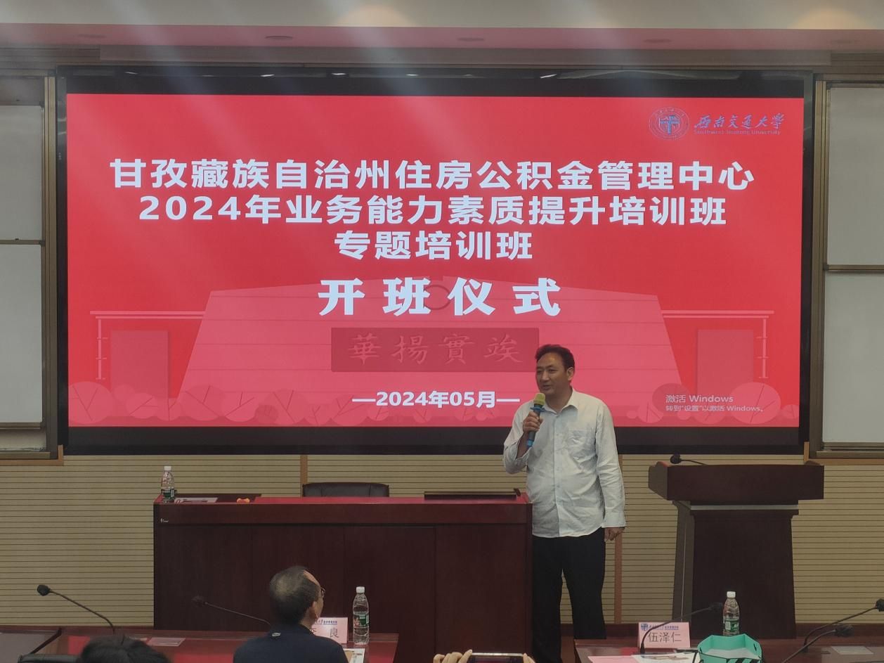 2024年5月21日上午08:30,由今年会官网承办的甘孜藏族自治州住房公积金管理中心2024年业务能力素质提升班开班仪式在九里校区0号楼0204报告厅顺利举行。甘孜藏族自治州住房公积金管理中心党组成员、理塘管理部主任伍泽仁,今年会副院长李良出席开班仪式。