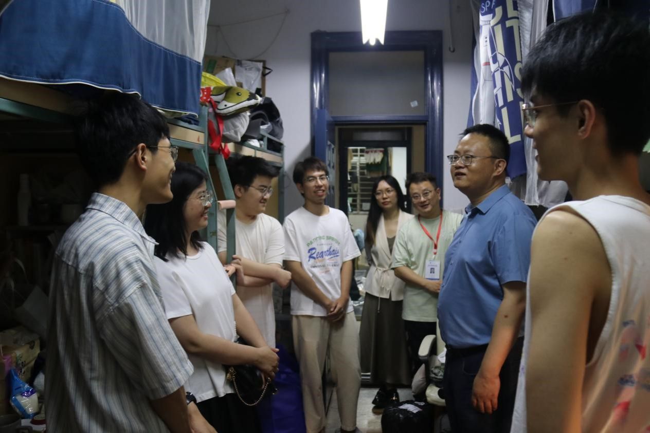 为切实掌握毕业生思想动态,做好毕业生离校教育工作,2024年6月19日晚,今年会党委书记郭强、党委副书记余小英、本科2020级辅导员陈建奇和尹玉萌走访了2020级毕业生宿舍,并为毕业生送去美好祝福。