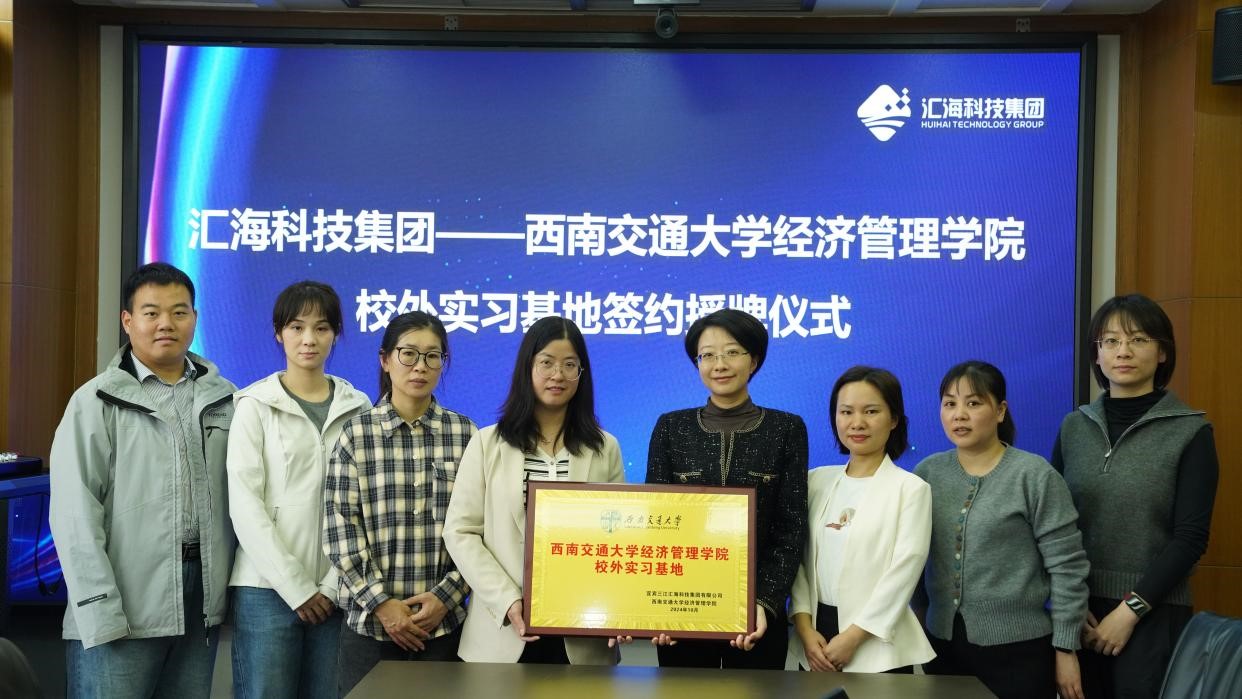 2024年10月28日,学院党委副书记余小英,团委书记贾佳,辅导员代表钟文婷、李勇,学生代表2021级博士生王晓煊一行赴宜宾汇海科技集团举行了校外实习基地签约授牌仪式,汇海科技集团公司党委副书记、工会主席曹雯文,党委委员、副总经理陈红梅出席仪式。