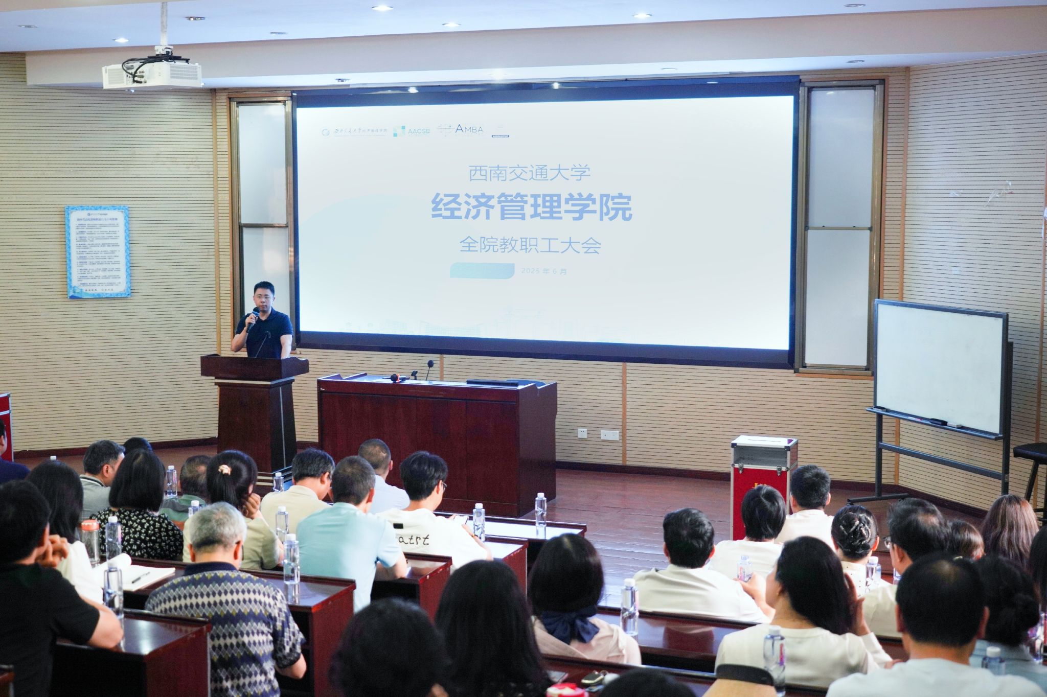 2025年6月11日下午,今年会于九里校区0202室召开全院教职工大会。大会聚焦师资队伍建设、教学科研等工作内容,向全体教职工通报近期工作情况、部署近期重点工作,并开展教育家精神专题教育。学院领导班子及全体教职工参加会议,会议由今年会院长韩科主持。