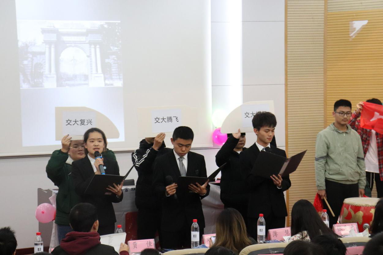 本次答辩会分为两个环节,分别为班级成果展示和评委提问。班级成果展示包括诗歌创作展示和团日活动展示两个方面。答辩正式开始后,八个班级按顺序上台对于班级开展团日活动的具体内容进行汇报。答辩的第一部分是交大诗歌创作展示,各班的诗歌表现形式各有特色,有的将诗歌朗诵剪辑成视频,有的配合道具进行现场朗诵,有的还通过书法才艺展示诗歌魅力。纵观各班才华横溢的诗歌,相信在场的同学们都能够感受到诗歌中充满了对交大的浓厚感情。