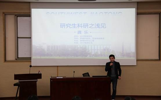 紧接着,龚乐学长带来以《研究生科研之浅见》为主题的分享。他结合自己的亲身经历告诉大家如何更好的获得导师的反馈,他认为从本科到研究生是一个从被动接受到主动搜寻的过程,因此建议大家以问题为导向、以做带学。接着学长就如何全流程提高中稿率进行了细致的讲解,讲解内容围绕“选题、文献、写作、修改、投稿、退修”这六个方面展开:选题方面,紧追热点问题、把握研究空白以及突出现实意义;文献方面,多看英文文献而且最好只看核心,并且要注重文献的时效性;写作方面,尽量写英文,引言部分很重要;修改方面,细节很重要,哪怕是一个标点符号或者是一个字,都要精确运用;投稿方面,学长提醒大家要防止被骗,不要自己单独做决定;至于退修,学长给出了四个四字箴言“细致入微、苦口婆心、逆来顺受、不卑不亢”。在分享的最后,龚乐学长提出“达到毕业要求是底线,不是目标”建议大家根据自身实际情况设定好自己的目标并朝着目标努力。