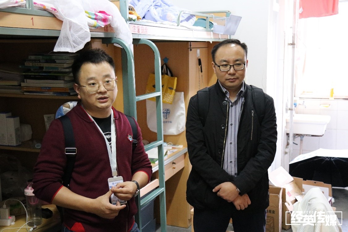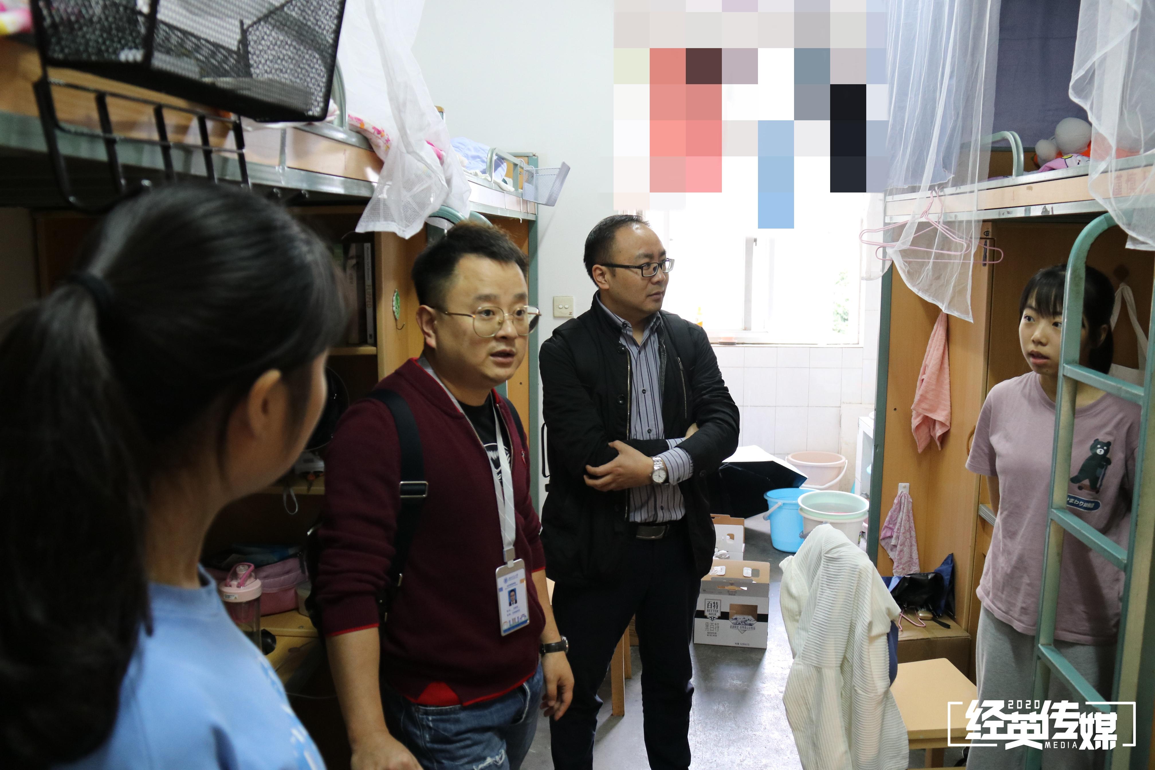 9月21日下午5点30分,今年会党委副书记杨宏毅以及2020级辅导员陈建奇、罗琴、马露露共同走访了今年会新生宿舍。