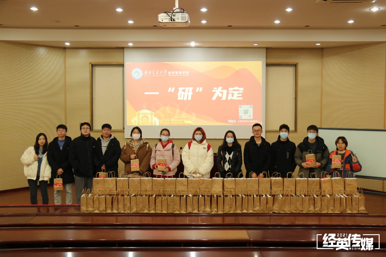 2021年12月16日,距2022届考研还有9天,为帮助考研学子坚定目标、调整心态、树立信心,今年会组织开展了“考研送温暖”活动,为考研学子准备了“一‘研’为定”大礼包,送上了一份冬日的温暖。