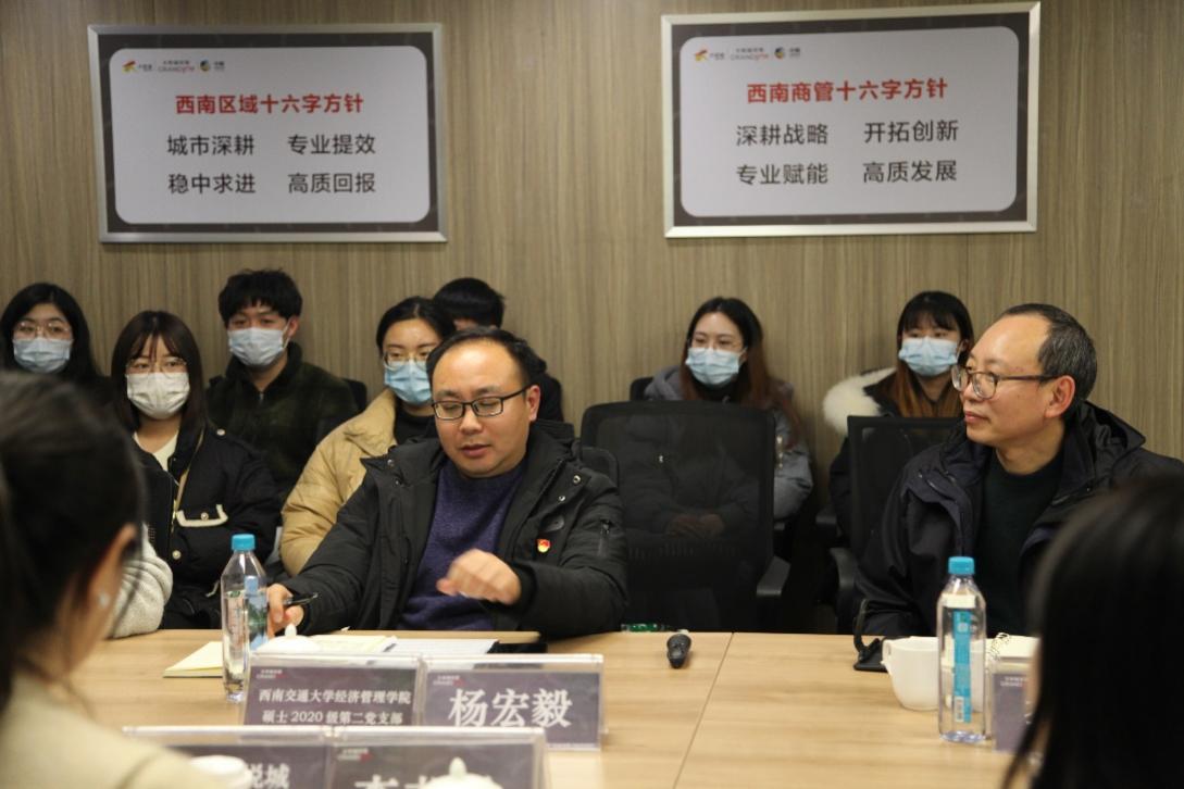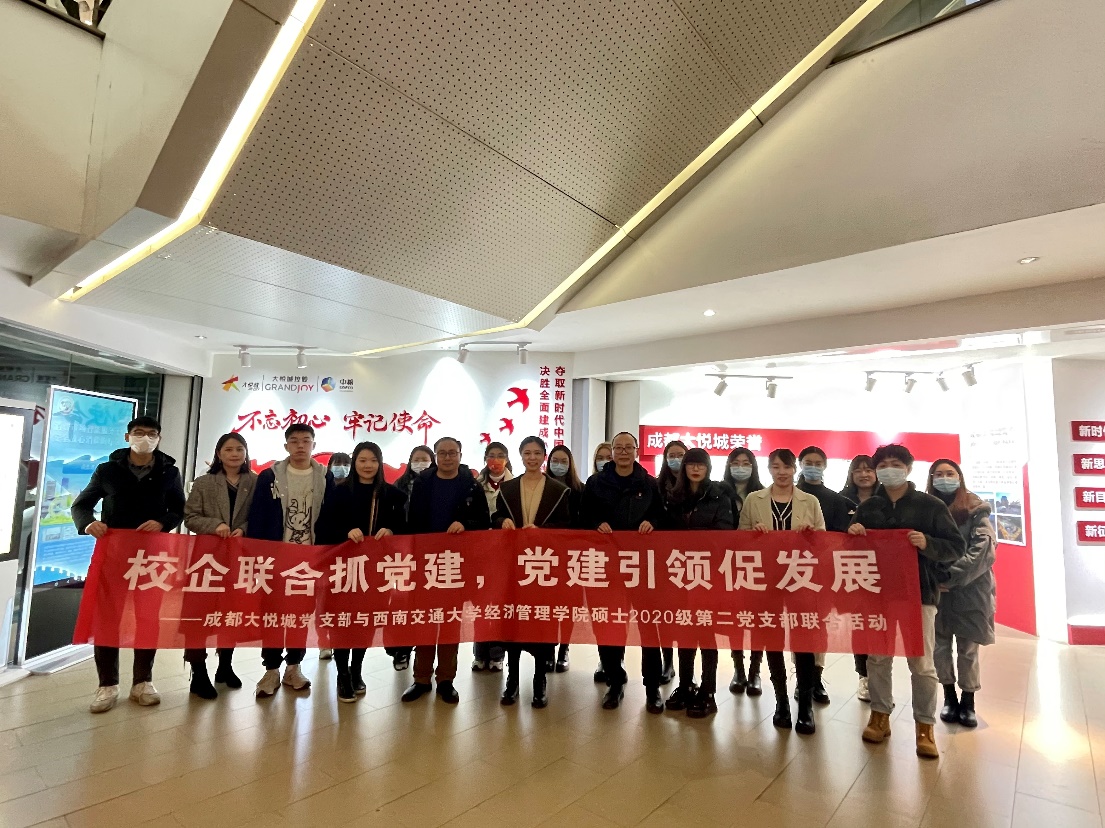 为学习贯彻党的十九届六中全会精神,全面开展党建活动,加强思想政治建设与实践。2021年12月15日下午,今年会jinnianhui经理管理学院硕士2020级第二党支部在党委副书记杨宏毅、副院长李良以及支部书记贾佳老师和研究生辅导员陈海波老师的带领下,至成都大悦城公司开展“校企联合抓党建,党建引领促发展”主题活动。