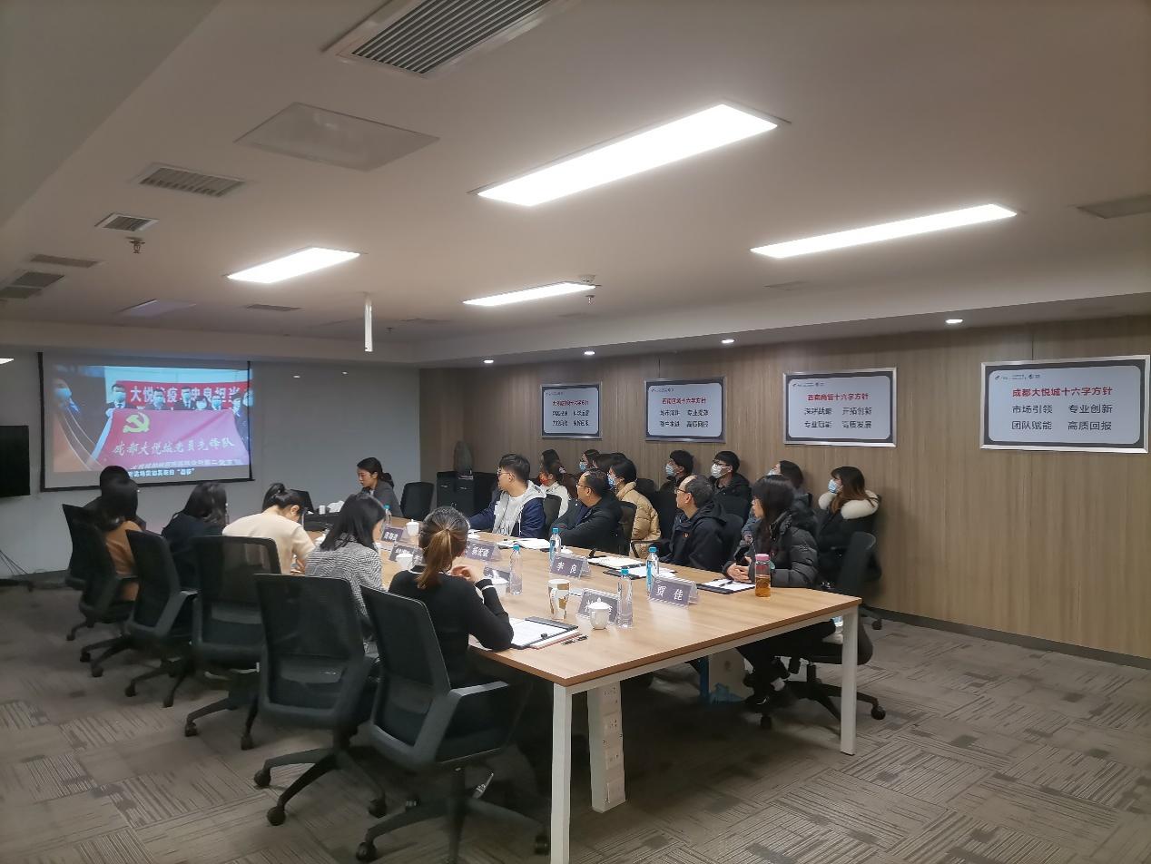 活动开始,由成都大悦城党支部书记李书娟同志分享企业相关情况,分别从企业发展历程、经营理念、业态范围、业务规划及规模等方面进行阐述。如:在减排节能方面的商业尝试与成果、商业市场突破和商业营销方式等进行了详细介绍。