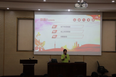 第二项内容为团组织关系转接,分别由辅导员卢婧茹以及辅导员莫代玉为同学们讲述。团员组织关系转接的内容包括线下转接和线上转接两部分内容,线下团组织关系转出需要团员证加盖转出章,团组织介绍信需毕业生团员提前咨询接收单位后按需开具。线上团组织关系转接主要是完成“网上共青团·智慧团建系统”一整套团组织关系转出流程。