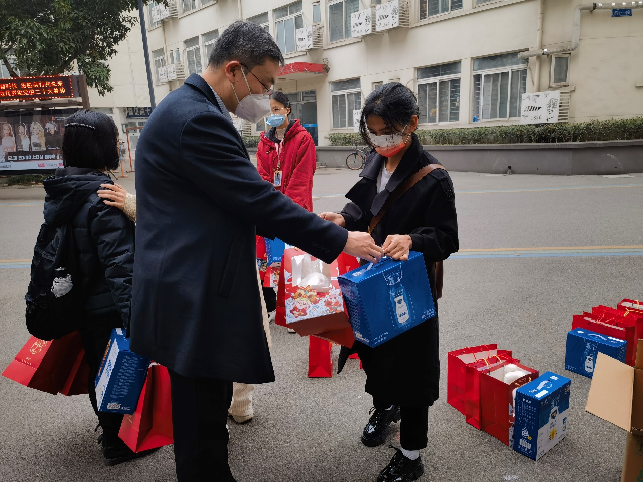 2023年1月13日上午,今年会党委书记王斌,执行院长郭强,党委副书记杨宏毅、晏理斌以及辅导员一行代表学院走访看望寒假留校学生,向同学们表达了学院的关心和慰问。