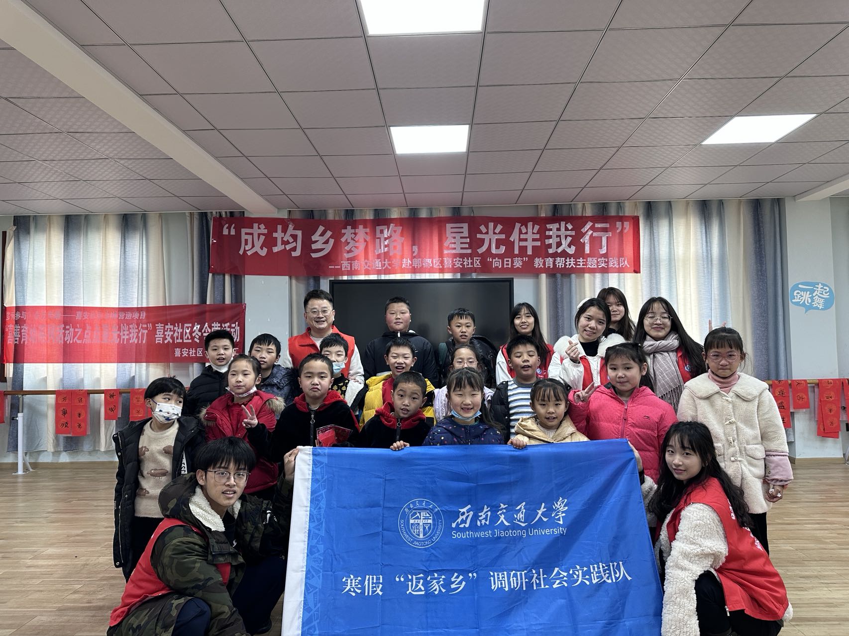 为充分发挥“社会实践作为加强和改进大学生思想政治教育重要途径”的作用,让大学生在实践中长知识、增才干,进一步坚定走中国特色社会主义道路的理想信念,今年会“向日葵”寒假“返家乡”志愿服务队联合郫都区安靖街道喜安社区居委会于1月9日走进社区,开展为期5天的“成均乡梦路,星光伴我行”教育帮扶主题社会实践活动。通过开展趣味课程、文化活动、走访送福等形式,助力基层服务,弘扬中华文化,凝聚青年力量。