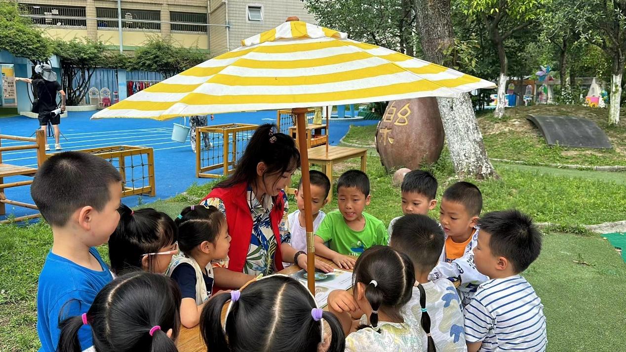 按照幼儿园老师的要求,志愿者们分别带队大班、中班、小班,在此基础上,志愿者们带领孩子们组成十几人的分享小组,在校园内各个地方专注阅读。
