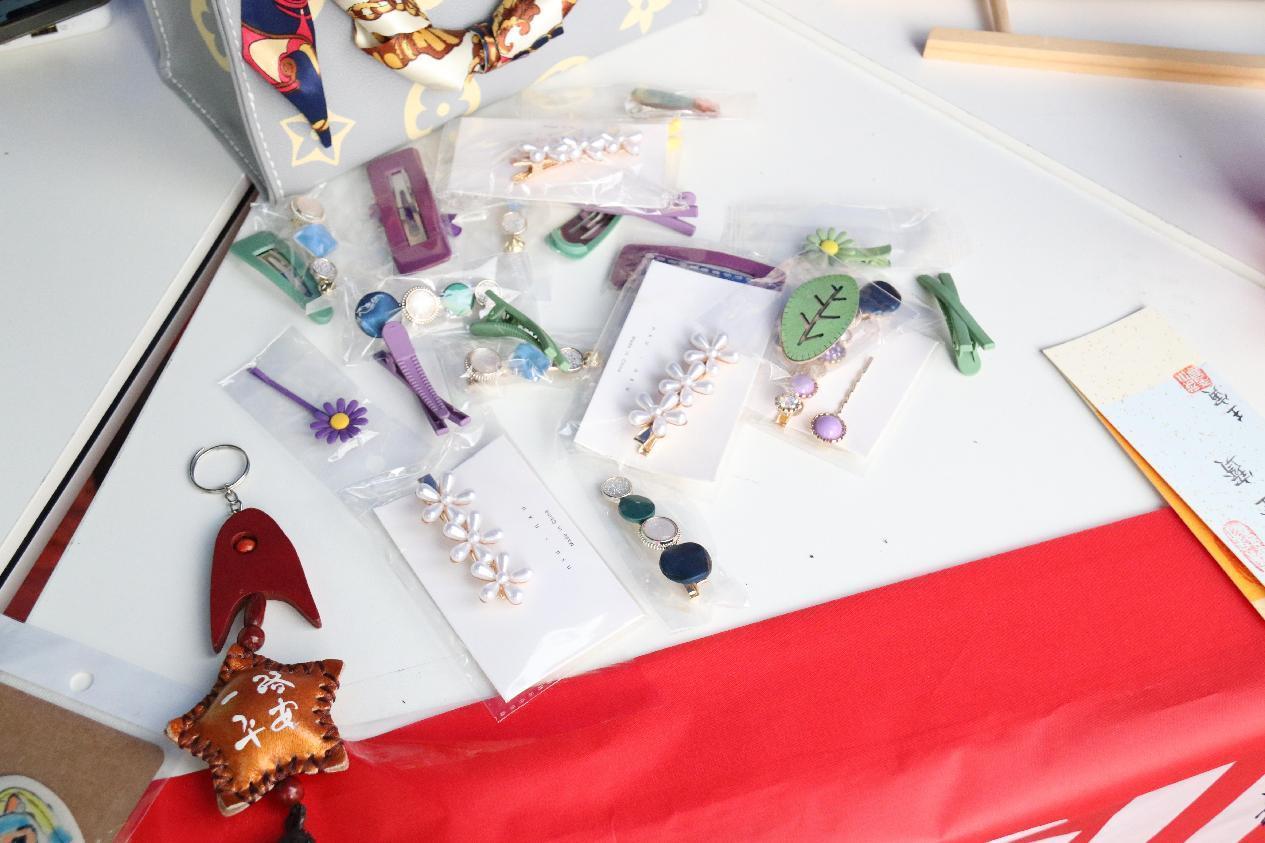 此次义卖活动的物品主要是阳光家园提供的“大朋友”们所制作的精美手工艺品,同时还有雨伞、纸巾等等生活必需品,看着琳琅满目的物品,同学们仔细地挑选自己心仪的物品,为阳光家园的“大朋友”们贡献了属于自己的爱心与关怀。