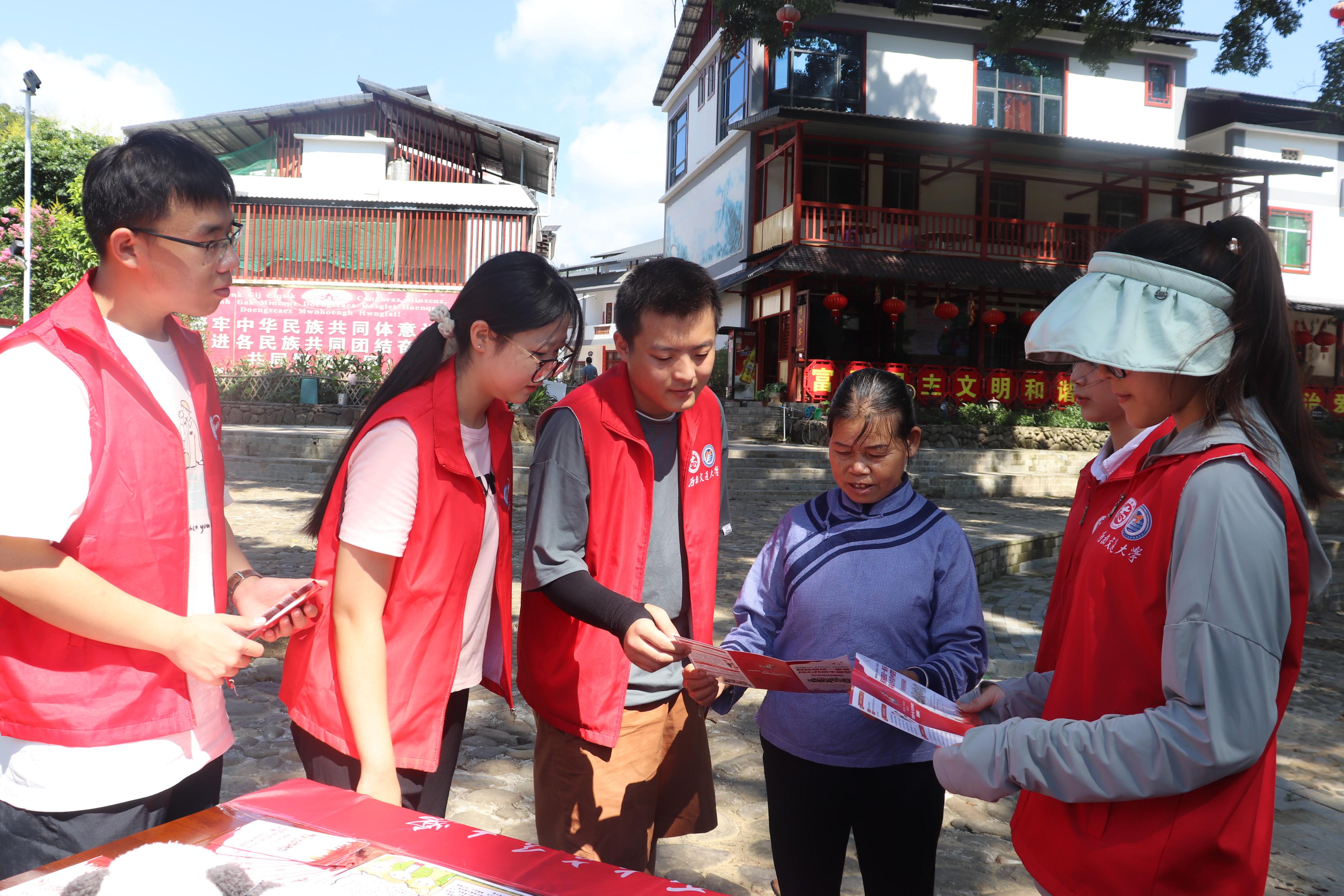 7月5日晚,实践队走访了40余户百坭村村民,其中38户为壮族同胞,通过发放问卷、面对面交流,调研村民对民族政策的了解情况,发放民族团结宣传册针对薄弱环节进行专题宣讲。7月6日上午,队员们在百坭广场设置定点摊位宣讲中央民族工作会议精神并进行普通话推广宣传。实践队通过政策宣讲阐释铸牢中华民族共同体意识的丰富内涵和民族团结的重要意义,号召大家坚定不移弘扬民族团结精神,走好新时代团结路。