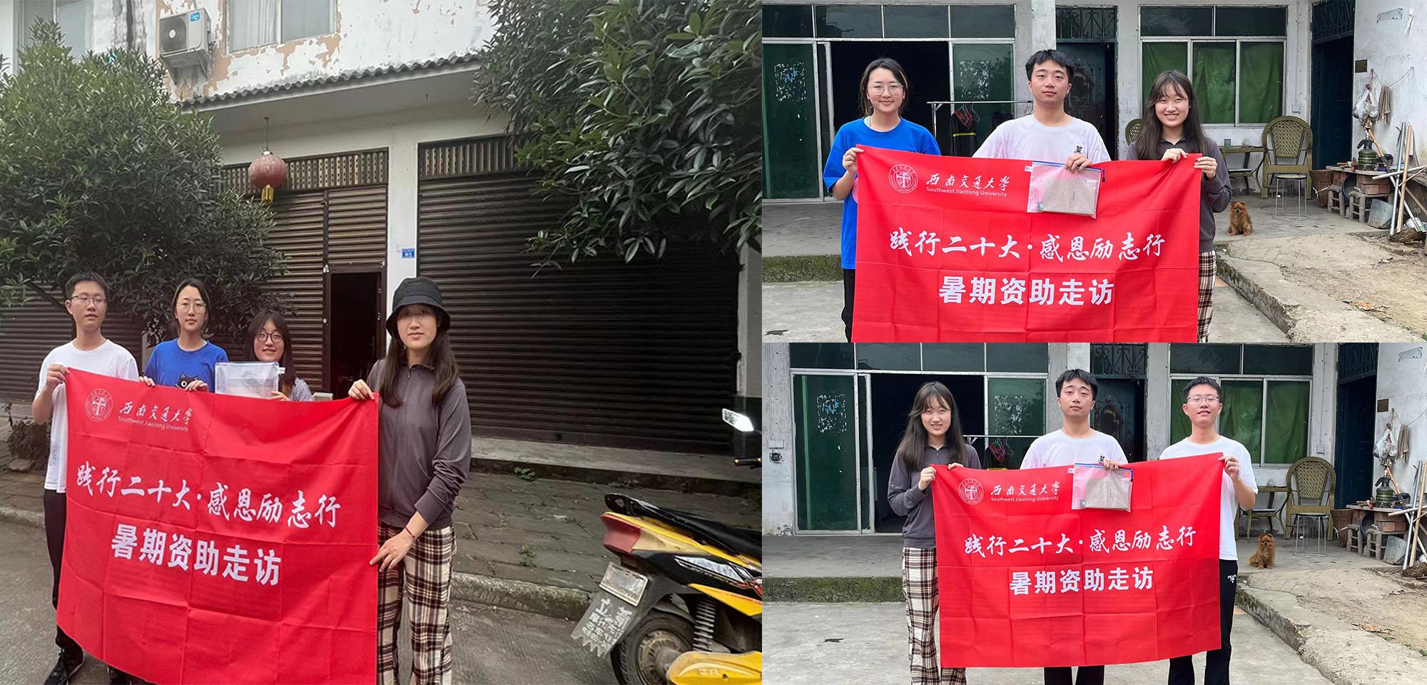 为深入学习宣传贯彻习近平新时代中国特色社会主义思想和党的二十大精神,切实了解家庭经济困难学生的实际情况,加强学生资助政策宣传力度,今年会“筑梦”团队在2023年7月10日至12日赴四川省邛崃市临济镇开展“践行二十大 感恩励志行”暑期资助走访活动,宣讲资助育人政策,鼓励家庭经济困难学生勇于求学,共享发展机遇,在受助自助过程中锤炼品格、增长才干。