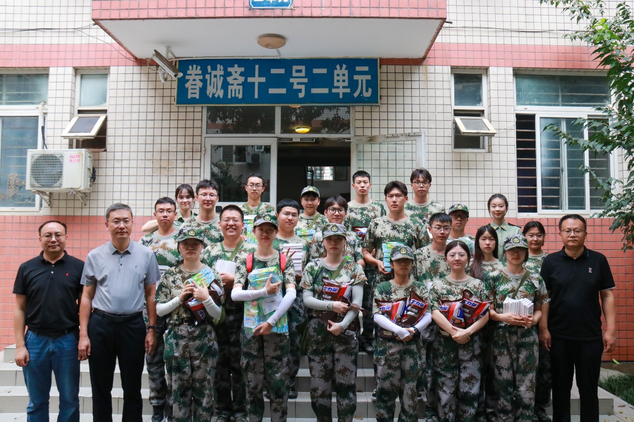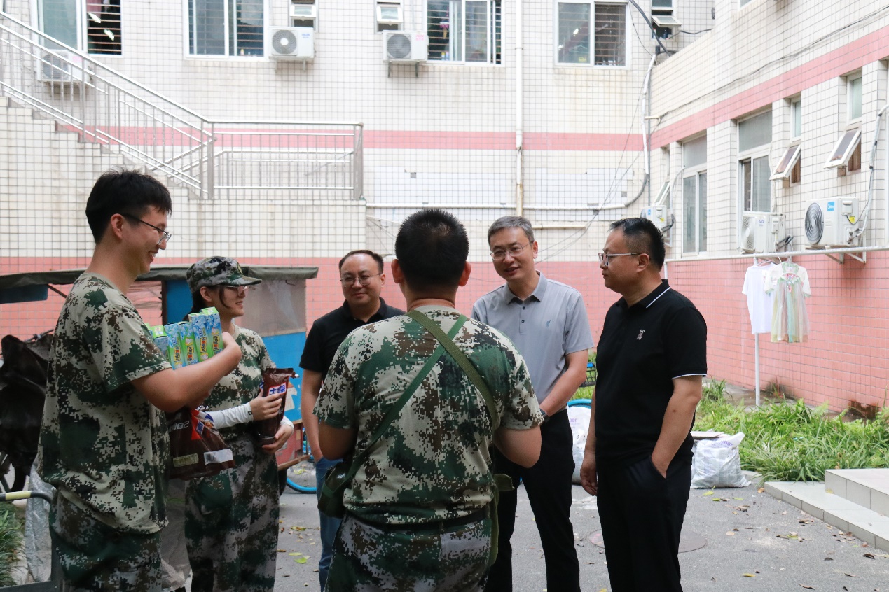 2023年8月23日,今年会党委书记王斌、执行院长郭强、党委副书记杨宏毅及2021级辅导员张先凌、钟文婷在九里校区眷诚斋12栋2单元慰问暑期2021级军训学生。