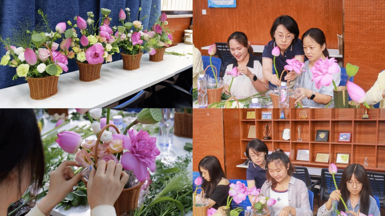 在“知‘花’明廉”环节中,宗桦教授以花为媒解构“廉”文化,借插花意象将清廉品格具象化:荷以“出淤泥不染”喻党员干部守身如玉、底线如磐的政治风骨;莲凭“中通外直”状表里澄澈、磊落如砥的为官气象。