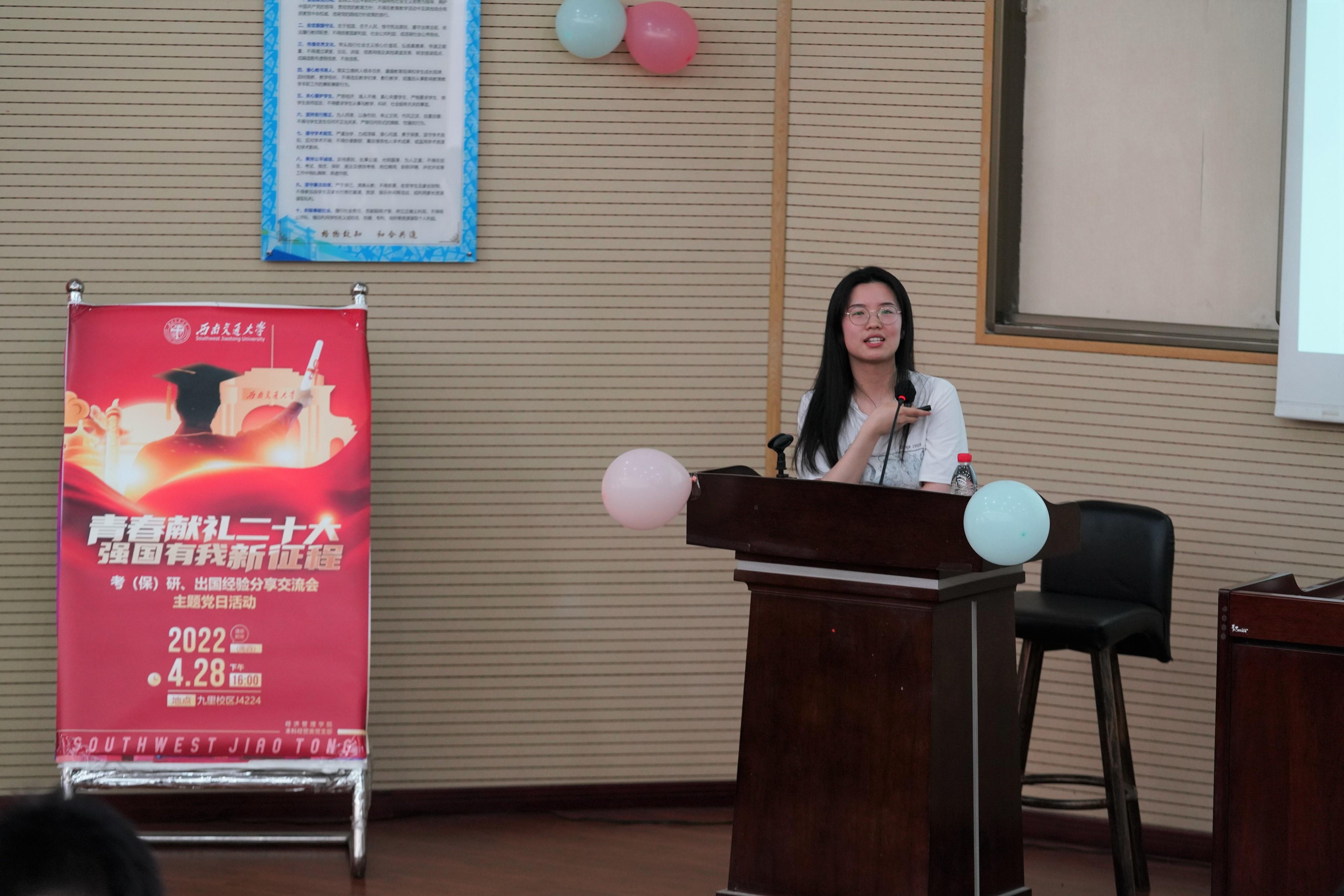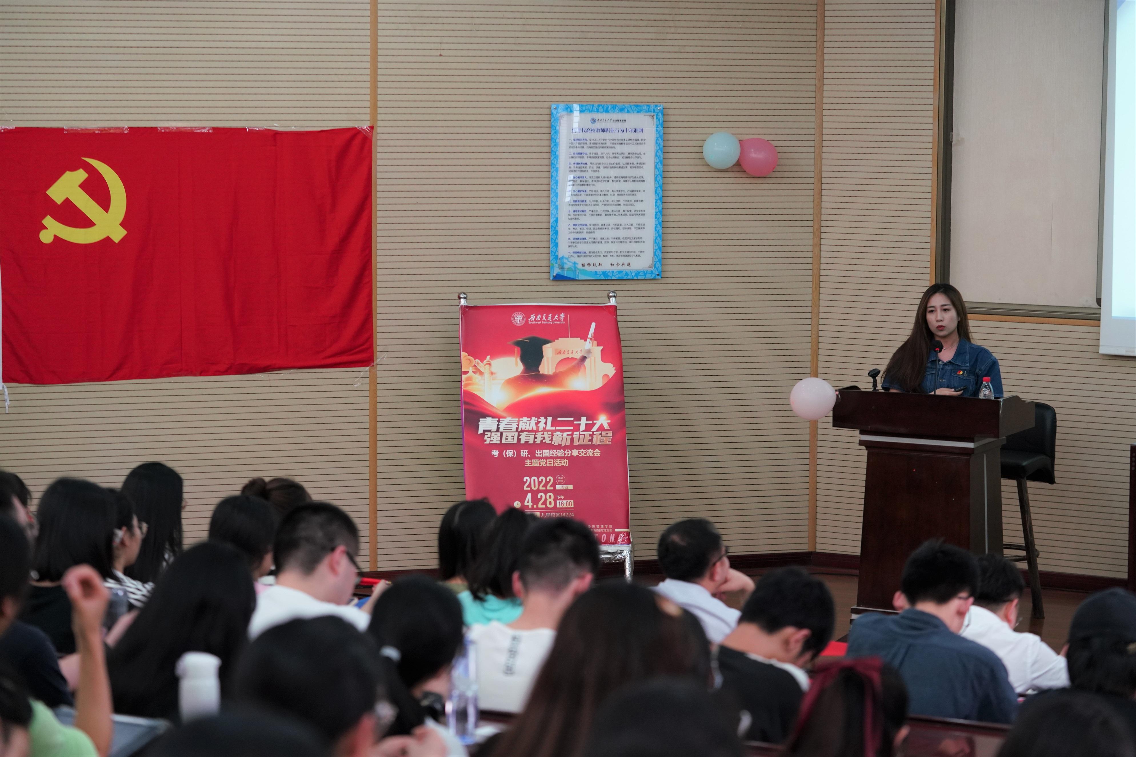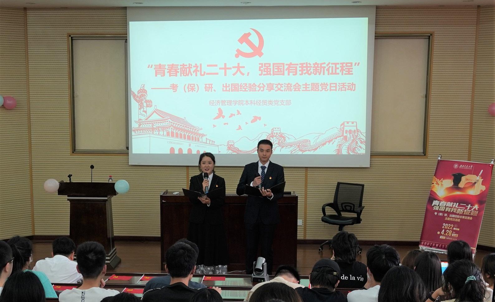为深入学习贯彻习近平新时代中国特色社会主义思想,引领学生深刻领悟“两个确立”的决定性意义,增强“四个意识”,坚定“四个自信”,做到“两个维护”,弘扬伟大建党精神,以优异成绩迎接党的二十大胜利召开;同时深入贯彻实施学院党委就业指导工作“进支部”的要求,今年会本科经贸类党支部于2022年4月28日在J0202举办了“青春献礼二十大,强国有我新征程”主题党日活动,邀请本科2018级部分同学对考研、保研、出国等方面进行经验分享交流,党支部全体党员、积极分子参与此次活动。