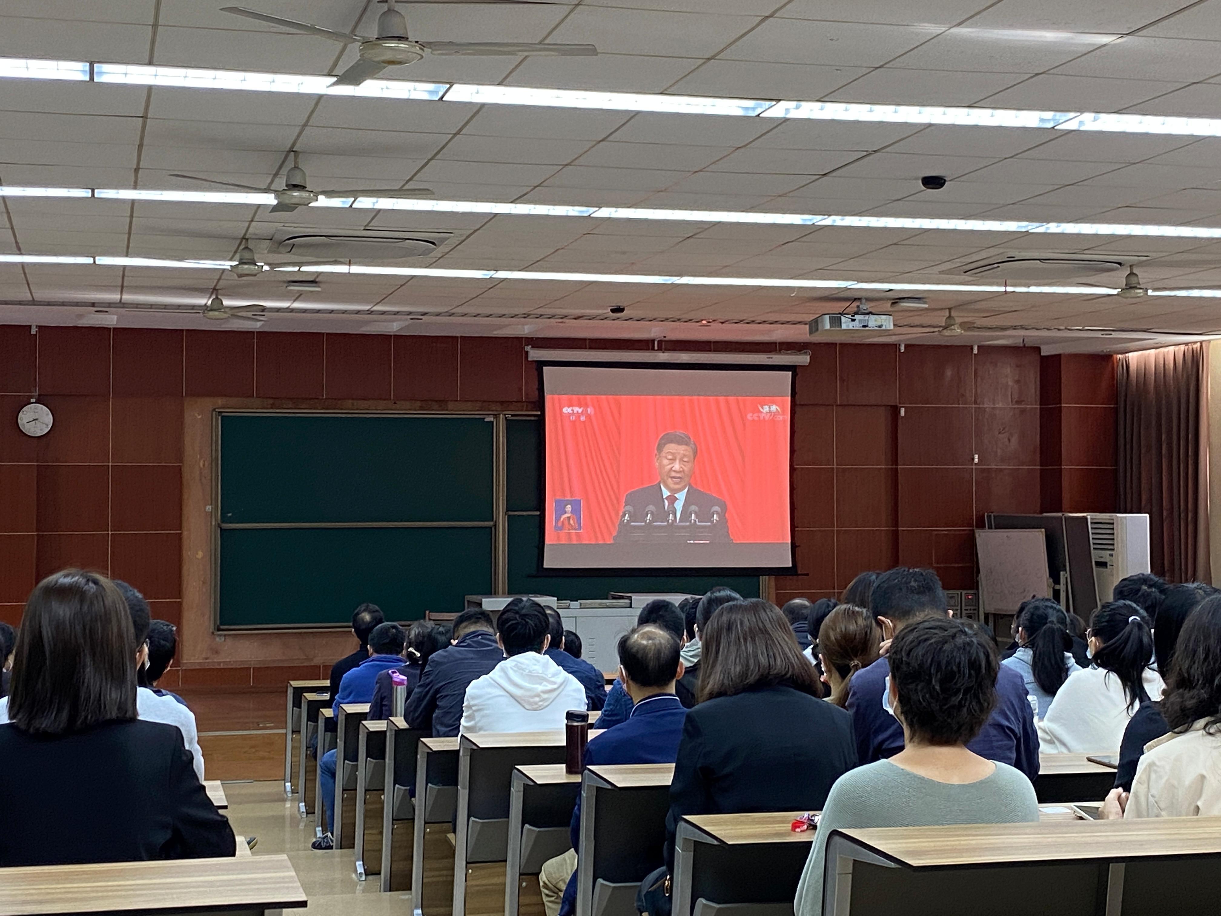 今年会党委积极组织师生收听收看党的二十大开幕,以热烈、浓厚的氛围迎接党的二十大胜利召开。由于疫情未能参加集中收听收看的部分师生也在家中通过手机、电视、电脑等方式收看党的二十大开幕直播盛况,认真聆听习近平总书记鼓舞人心的报告。师生们纷纷表示很荣幸参与这次党的二十大开幕的观看,感到激动人心、热血澎湃、时不我待,将不负党的号召在新时代不懈奋斗,建功立业。