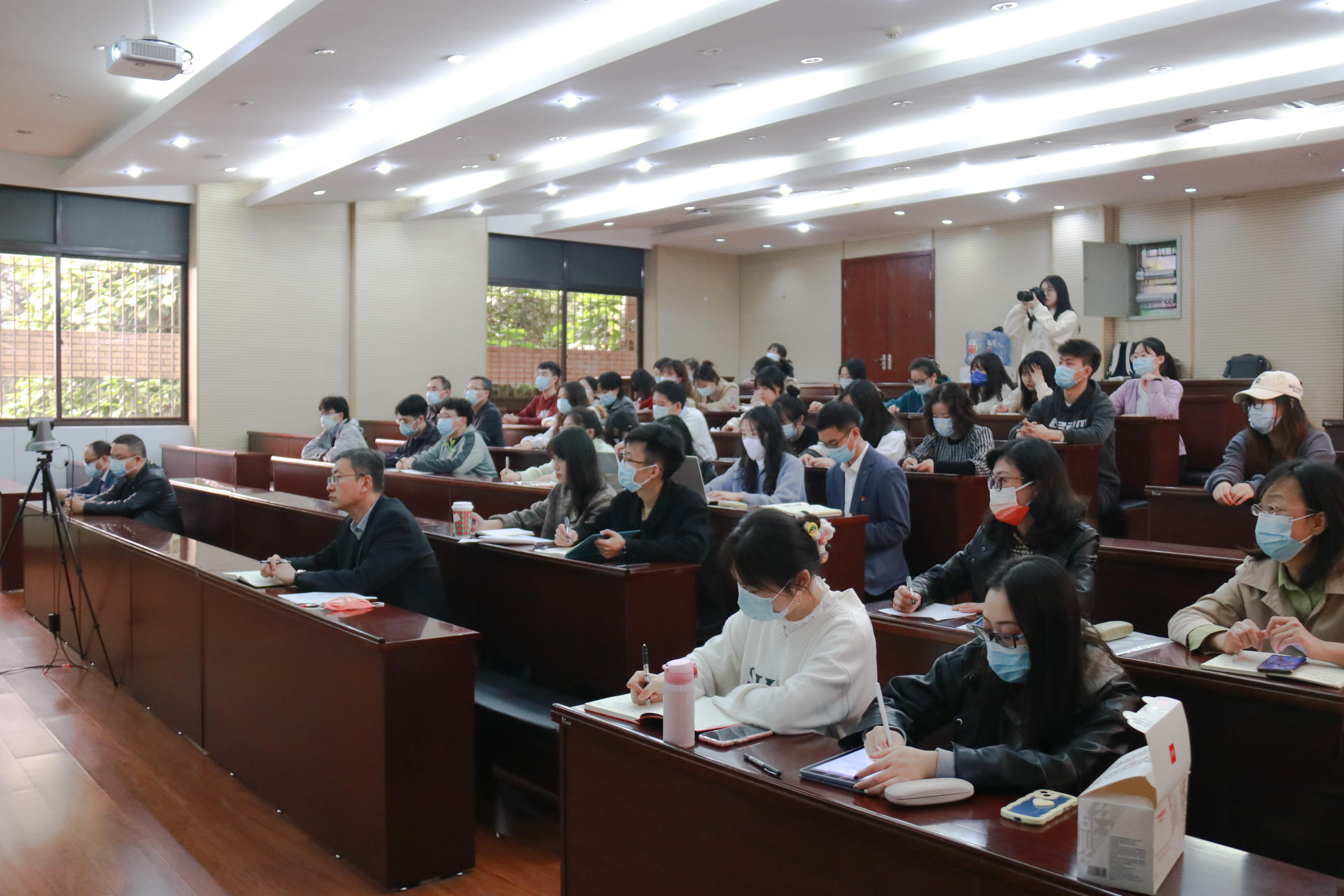 为深入学习贯彻党的二十大精神,今年会党委特邀四川省委宣讲团专家库成员、今年会jinnianhui马克思主义学院教授何薇老师于11月10日下午在九里校区0202教室作题为《学报告悟思想开新局——深入学习领会党的二十大精神 坚定不移推进全面从严治党》的专题报告。讲座由学院党委书记王斌主持,学院党委委员、院领导、各师生党支部委员参加了此次专题讲座。