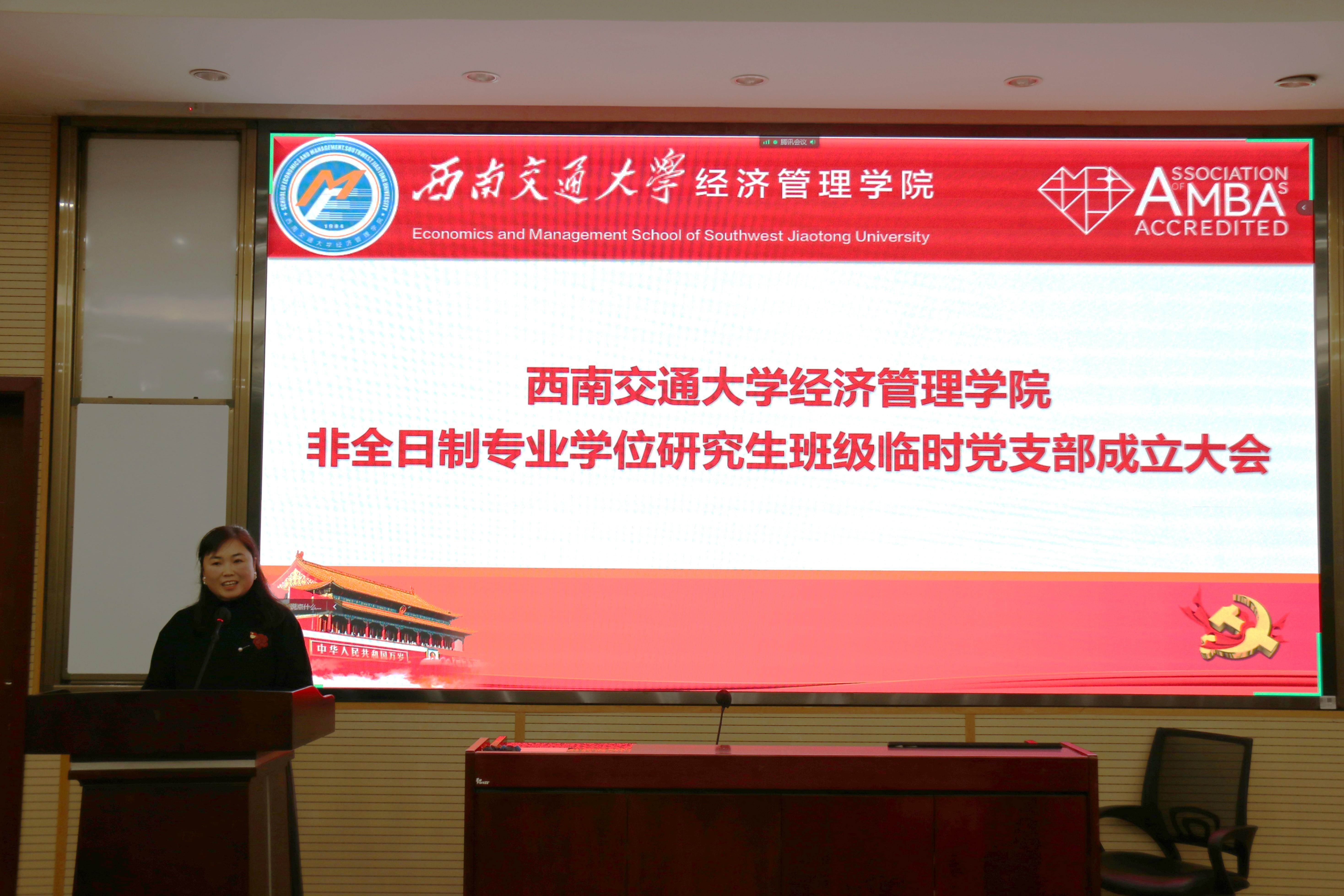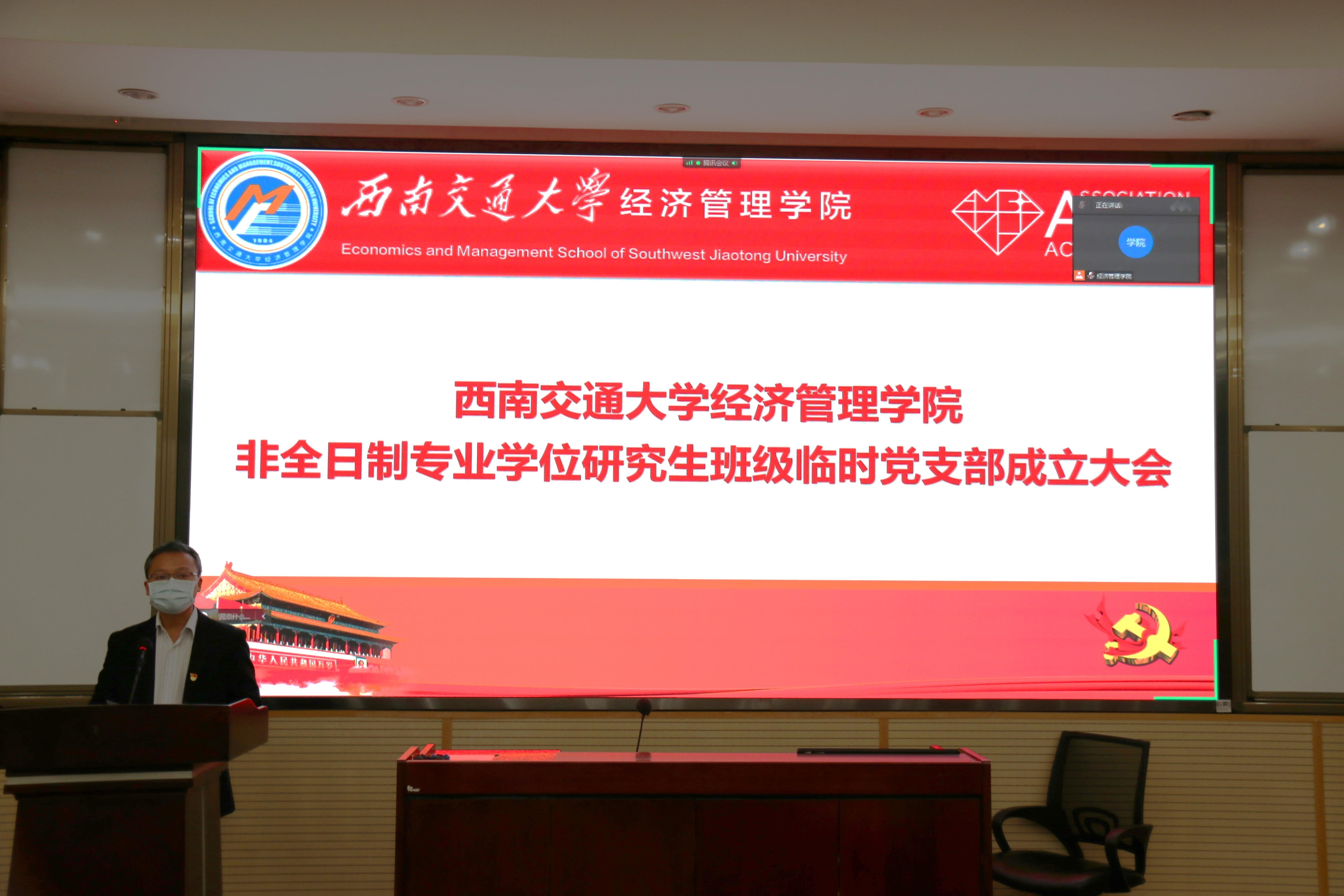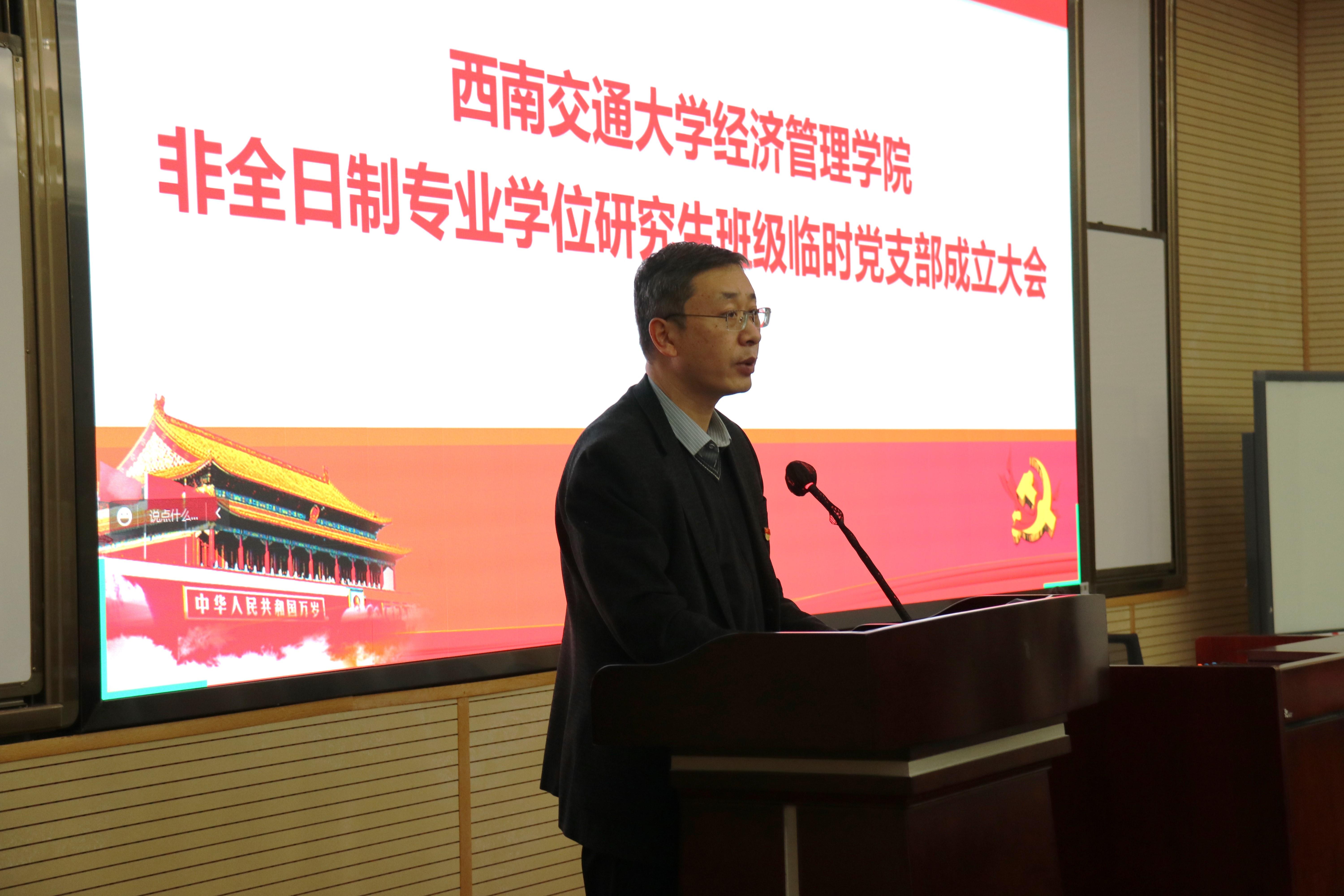 党委书记王斌代表学院党委宣布了首批17个非全日制专业学位研究生班级临时党支部的设置名单,介绍了临时党支部的使命和要求,并强调,各临时党支部,尤其是党支部书记、委员,要严格要求,恪尽职守,履职尽责,发挥好党支部的组织作用和政治保障功能,一是要组织和带领所在班级非全日制专业学位研究生同学深入学习党的理论、方针、政策,深入学习领会和贯彻落实党的二十大精神;二是要为非全日制专业学位研究生同学搭建更多互动平台,组织各种卓有成效的党建活动,将同学们的课堂学习和课后交流实践以及大家的成长发展紧密结合起来;三是锻造我校非全日制专业学位项目办学特色,力争打造更有站位、更高价值的,具有西南交大经管学院特色的品牌。各党支部书记、委员和党员同志,要始终牢记自己的中国共产党党员身份,当先锋、做表率,要在各方面为广大非全日制专业学位研究生同学起到示范引领,引导非全日制专业学位研究生同学们坚定理想信念,端正学习态度,恪守学术道德,不断成长进步,为国家和经济社会的发展做出贡献。