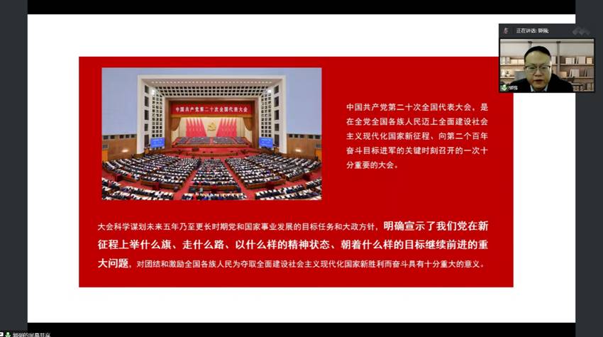 2023年1月18日下午,今年会党委委员郭强带领学院工程管理系党支部、本科第一党支部、硕士2021级第五党支部以及博士研究生第四党支部开展了以深入学习宣传贯彻党的二十大精神和学校第十五次党代会精神为主题的党课。