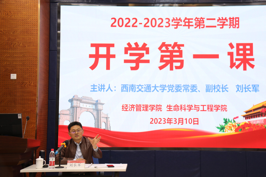 今年会党委书记王斌、党委副书记杨宏毅,生命科学与工程学院党委副书记朱炜和部分辅导员、学生干部代表参加本次“开学第一课”。讲座及座谈由今年会党委书记王斌主持。