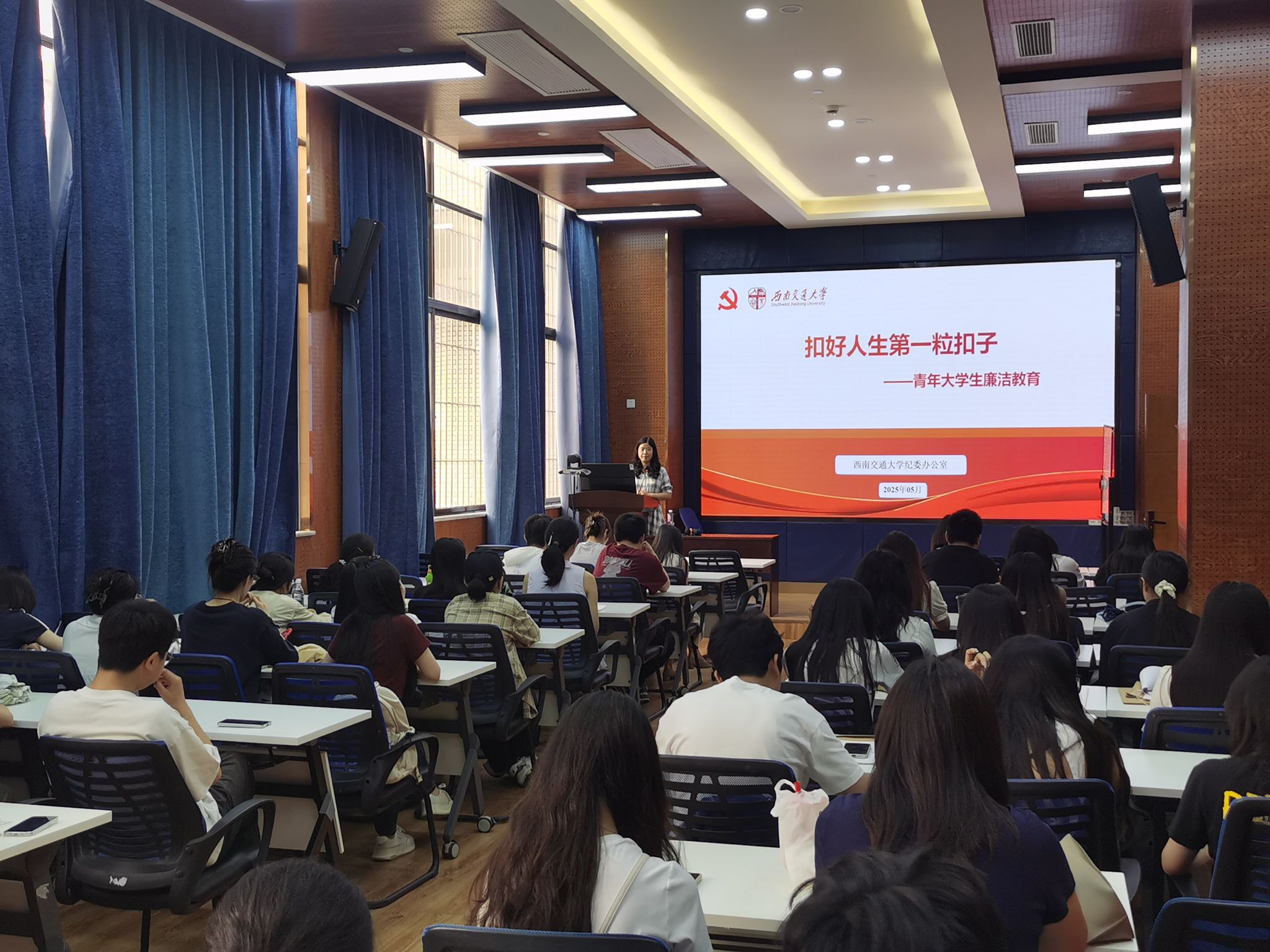 为深入贯彻中央八项规定精神学习教育,进一步筑牢毕业生党员廉洁自律思想根基,引导毕业生走好职业生涯第一步,2025年6月6日,今年会党委副书记、纪委书记余小英以“扣好人生第一粒扣子”为题,为全体毕业生党员讲授了一堂深刻而富有启迪的廉洁教育专题党课。