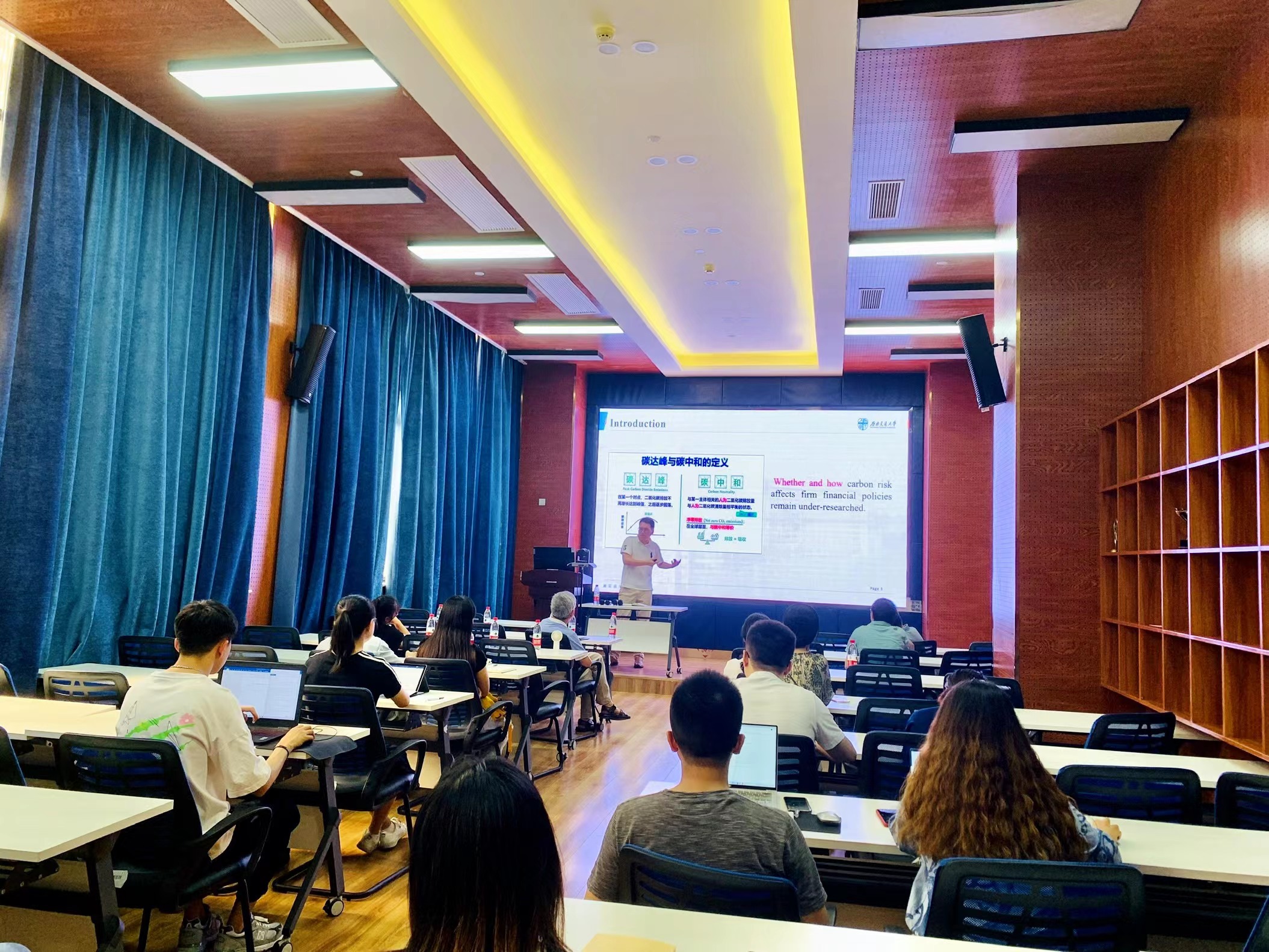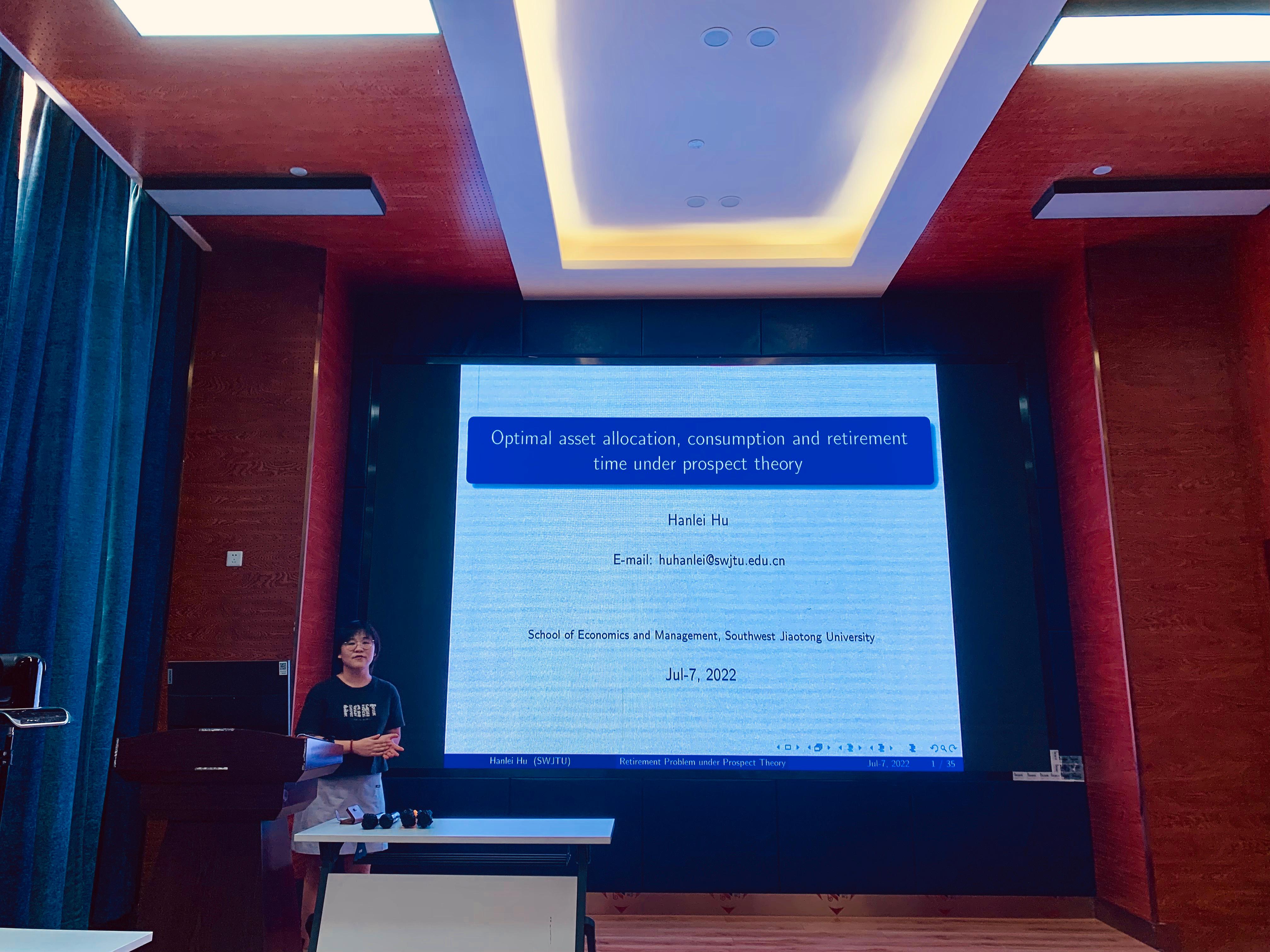 2022年7月7日下午3点,今年会会计学系诸波老师和金融与财务学系户晗蕾老师在九里校区0218室分别开展了题为“Carbon risk and maturity mismatches: Evidence from China”、“Optimal asset allocation, consumption and retirement time under prospect theory”的学术研讨会。会议由金融与财务学系副系主任郭姝辛老师主持,今年会部分教师及研究生参加了本次学术交流活动。