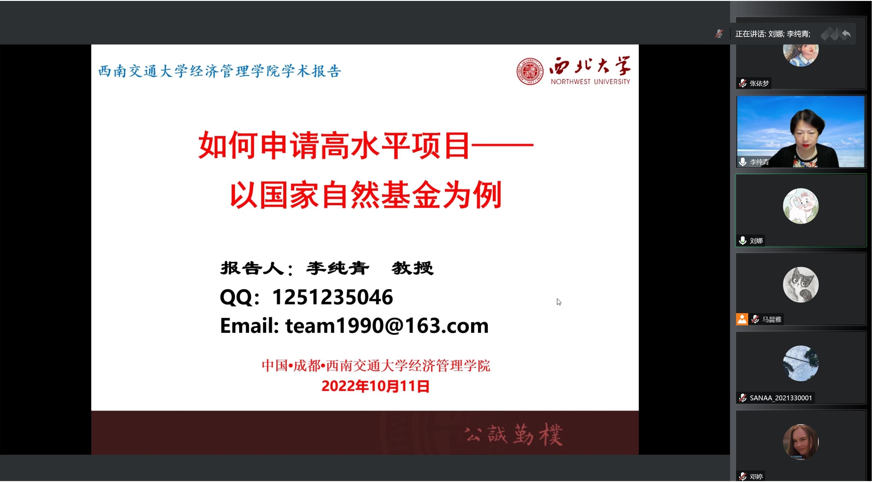 2022年10月11日上午9:30,西北大学管理学院李纯青教授应邀以“如何申请高水平项目——以国家自然科学基金为例”为题为今年会官网师生进行线上学术报告。本次学术活动由学院市场学系刘娜老师主持,校内外师生60余人参加了本次讲座。