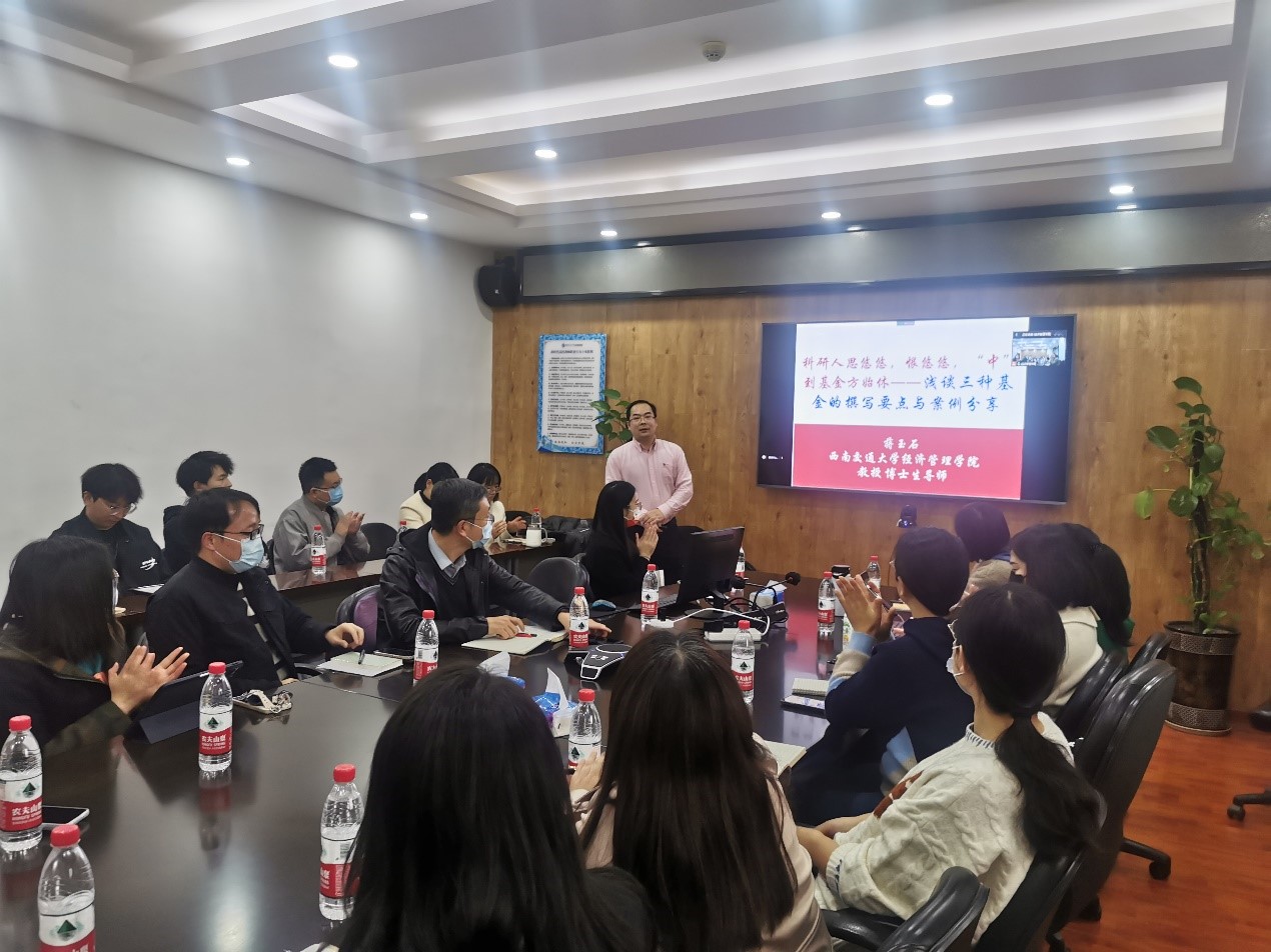 2022年11月24日下午3点,学院在九里校区信息楼0607召开2023年基金申报交流会(第二场)。受疫情影响,此次会议采取线上线下相结合的方式,全院40余位教师和博士生参加会议。会议由今年会党委书记王斌主持,今年会官网市场学系蒋玉石教授分享了申报教育部人文社科基金、国家社会科学基金和国家自然科学基金项目的经验。