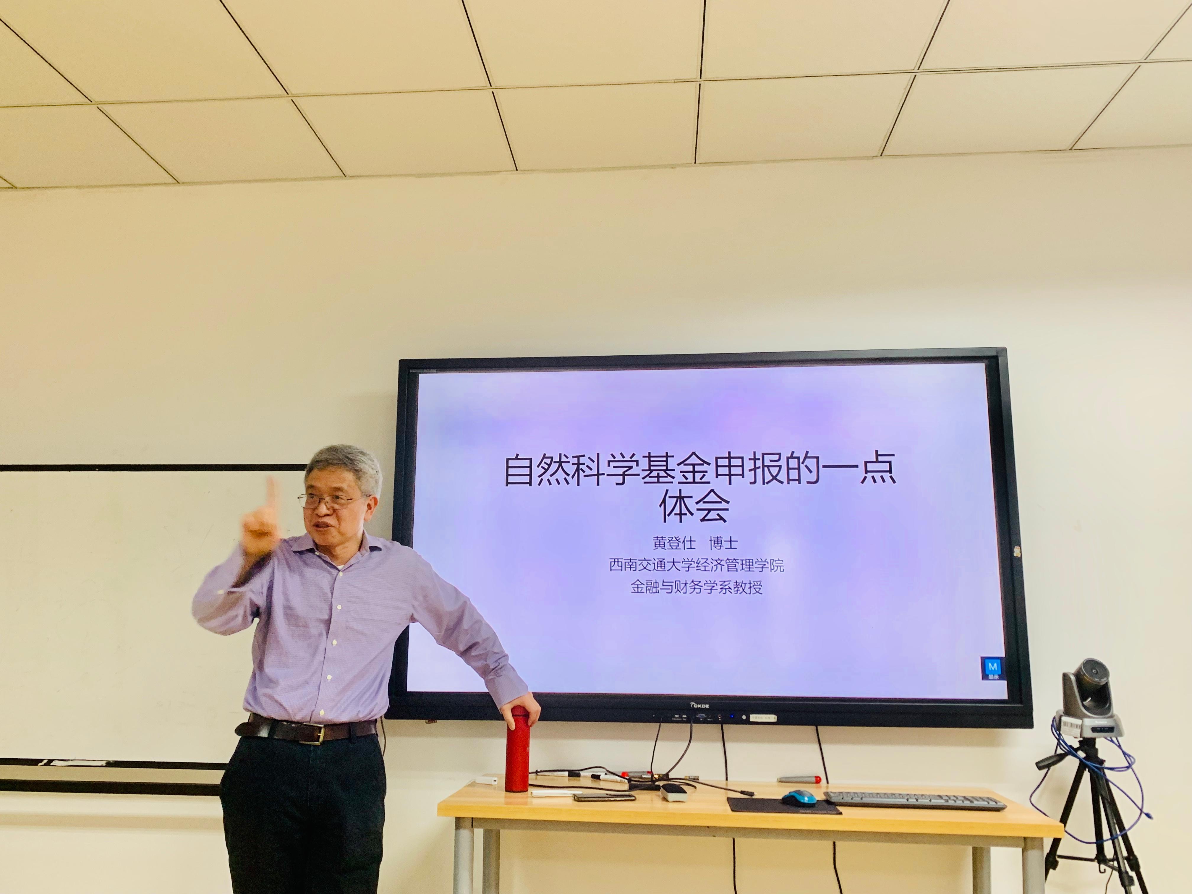2021年12月7日下午三点,在九里校区0411室,金融市场与公司金融科研团队负责人黄登仕教授以“自然科学基金申报的一点体会”为题给经管学院的师生带来了一场引人入胜的学术讲座。今年会官网副院长周嘉南教授主持此次研讨会。
