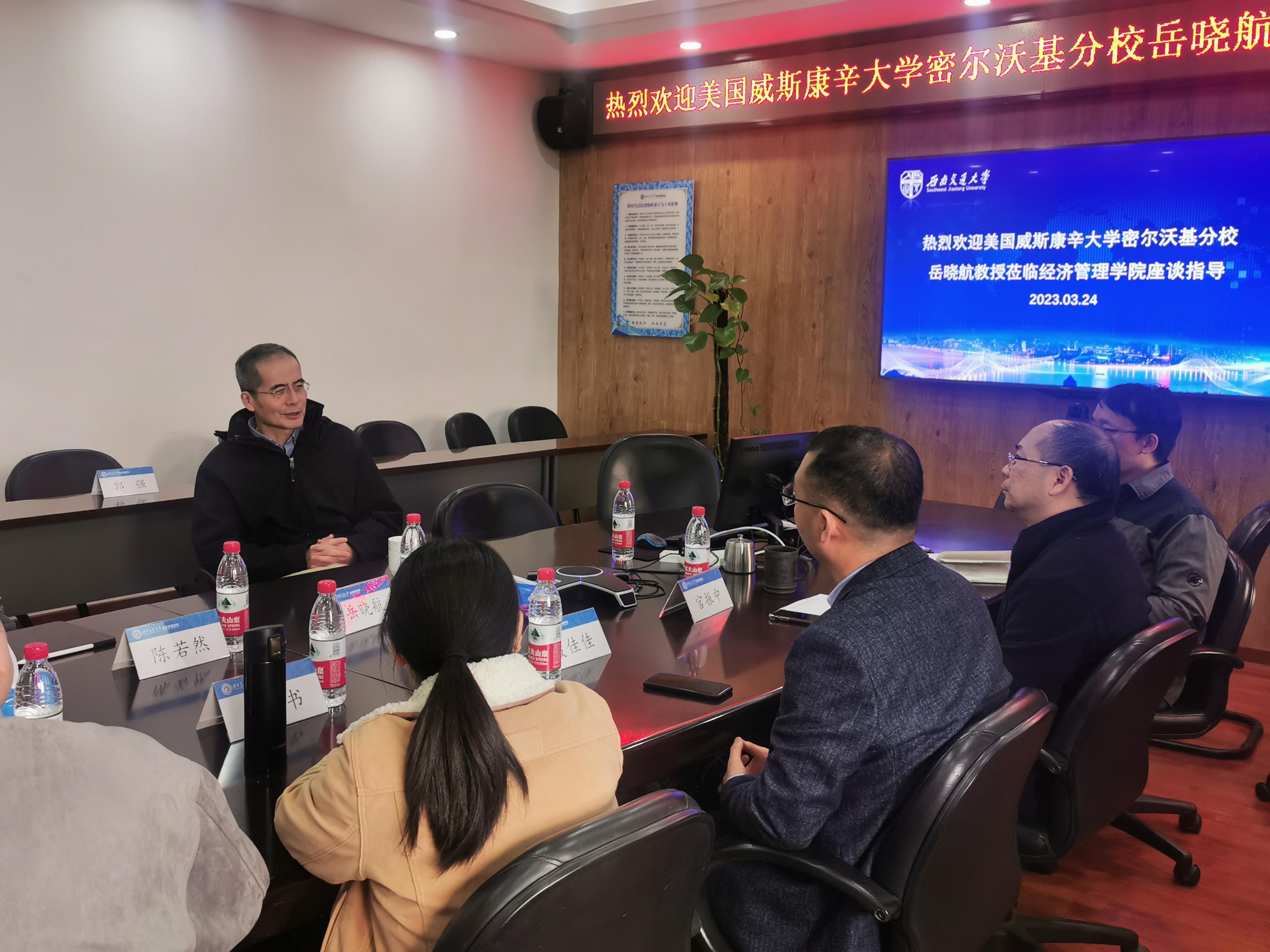 2023年3月24日下午,美国威斯康辛大学密尔沃基分校(The University of Wisconsin-Milwaukee)商学院岳晓航教授应邀来今年会官网座谈指导。会议由今年会聂佳佳副院长主持,学院信息系统与运营管理系主任官振中老师以及部分青年教师参与座谈。