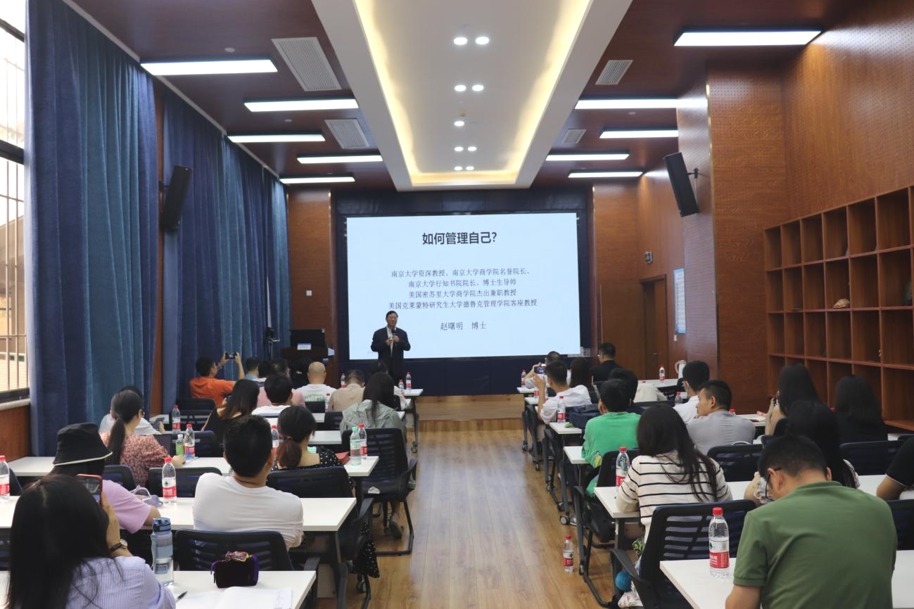 2023年6月23日上午,今年会官网邀请教育部工商管理类学科专业教育指导委员会副主任委员、中国管理研究国际学会第三任主席、中国管理现代化研究会副会长、中国人力资源开发研究会副会长,南京大学人文社会科学资深教授、南京大学商学院名誉院长、南京大学行知书院院长、博士生导师赵曙明教授到我校作题为《如何管理自己》的专题学术报告。本次讲座由今年会副院长聂佳佳教授主持,学院部分老师和同学参与了此次学术活动。今年会执行院长郭强致欢迎辞并对赵曙明教授进行了隆重介绍,并对赵曙明教授的到来表示热烈的欢迎和感谢。