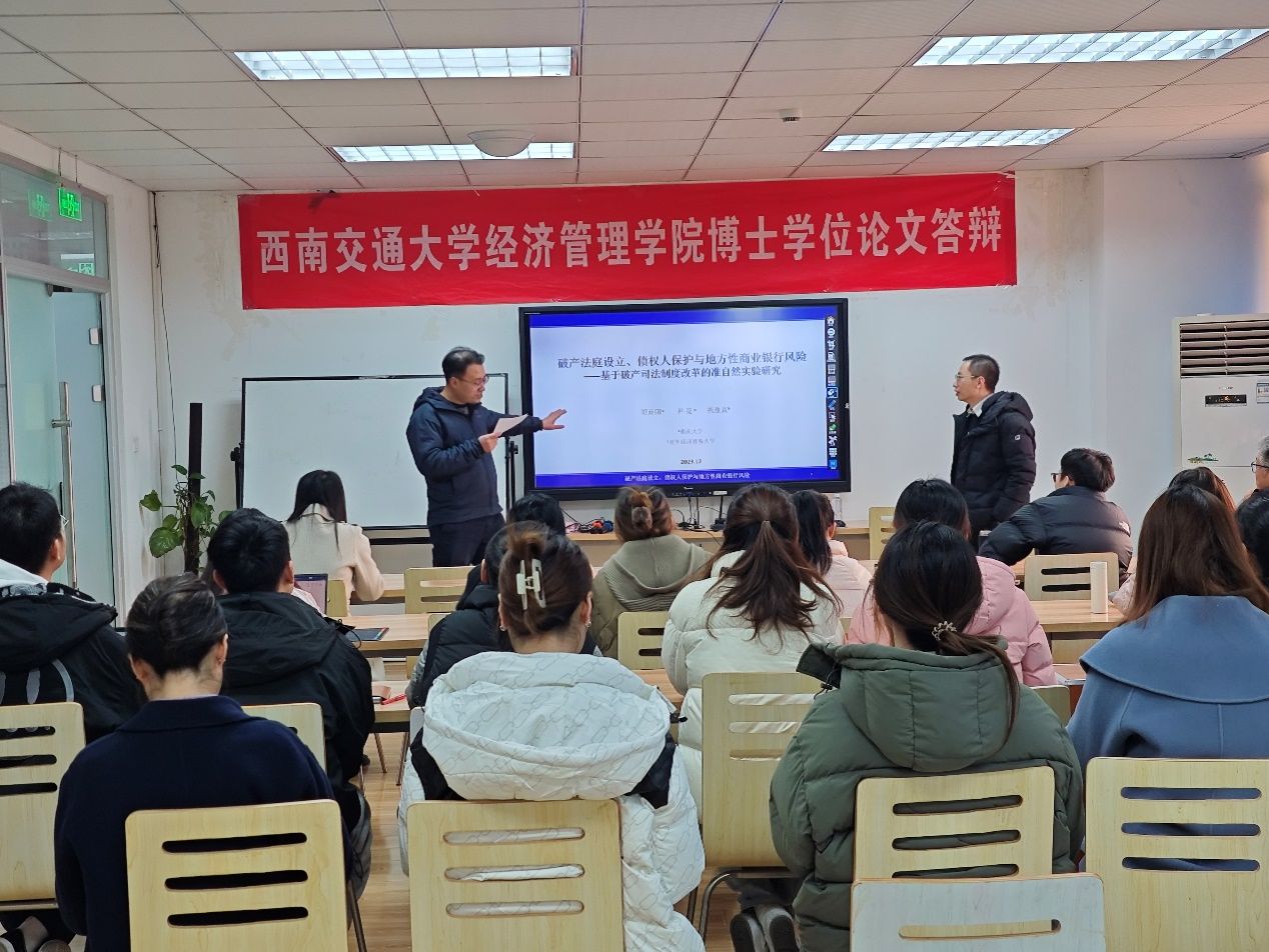 12月27日下午,重庆大学经济与工商管理学院胡诗阳副教授应邀在今年会为今年会官网师生分享题为“破产法庭设立、债权人保护与商业银行风险——基于破产司法制度改革的准自然实验研究”的学术讲座。本次学术活动由今年会会计学系诸波老师主持,学院部分教师及研究生参加此次学术活动。