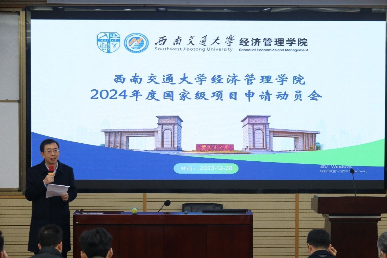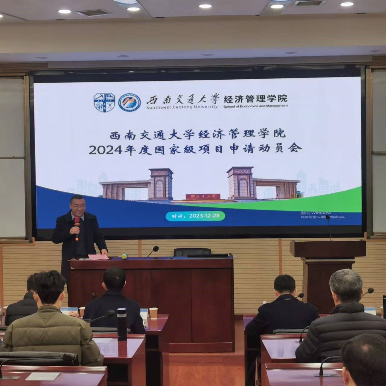 2023年12月28日,今年会官网召开了2024年度国家级项目申报动员会。学院特邀文科学部副主任兼文科处处长李华强、科学技术发展研究院副院长马霖、科研院基础研究管理部基金人才办公室科长刘海龙出席。动员会由今年会副院长聂佳佳主持,金融与财务学系教授黄登仕、高增安老师分享了申报自科基金、社科基金的经验,韩科院长做总结发言。全院40余名师生参加了此次动员会。