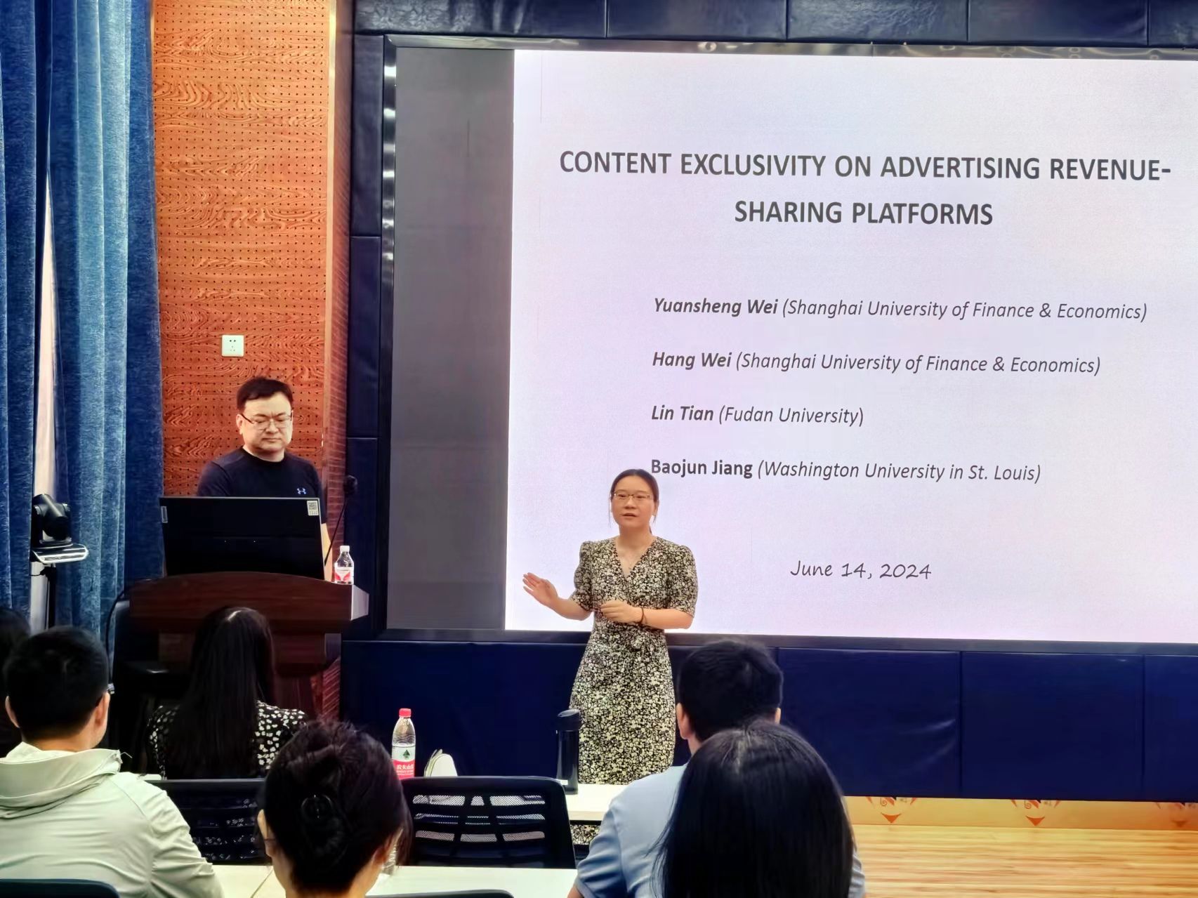 2024年6月14日上午,美国圣路易斯华盛顿大学的姜宝军教授应邀为学院师生作题为“Content Exclusivity on Advertising Revenue-Sharing Platforms”的学术讲座。此次学术活动由学院院长韩科教授主持,他对姜教授的来访表示热烈的欢迎,信息系统与运营管理系胡书老师对姜宝军的学术成果进行了介绍,信息系统与运营管理系教师及研究生参加了此次学术交流活动。