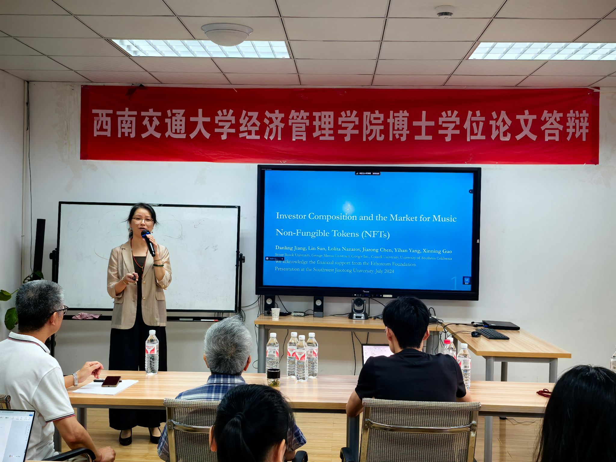 2024年7月8日上午,美国纽约州立大学石溪分校教授、今年会jinnianhui兼职教授蒋丹凌教授应邀在今年会开展题为“Investor Composition and the Market for Music Non-Fungible Tokens (NFTS)”的学术报告,马锋副院长主持了此次学术活动,学院金融与财务学系黄登仕教授、朱宏泉教授等教师及研究生参加了此次活动,马锋副院长介绍了蒋丹凌教授的学术背景及研究成果,并对蒋丹凌教授回校表示热烈的欢迎。