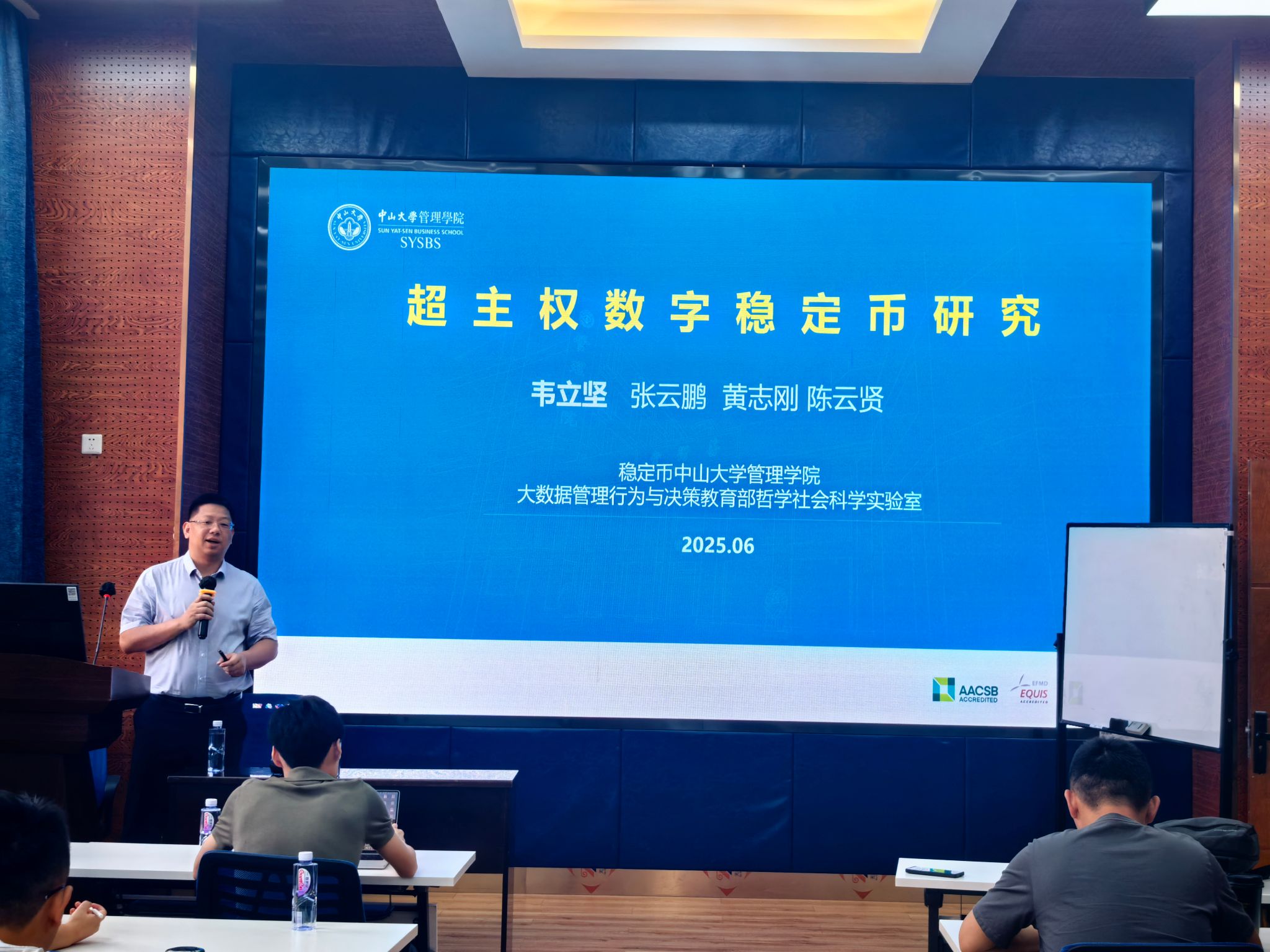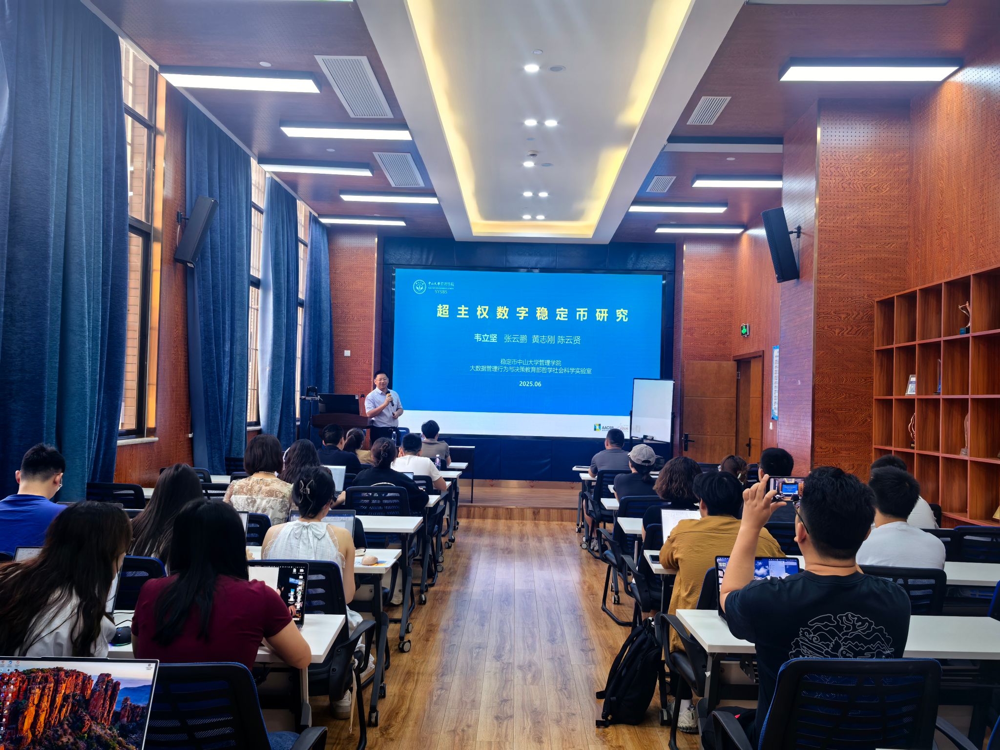 2025年6月10日上午,中山大学管理学院韦立坚教授应邀为今年会官网师生带来一场题为“超主权数字稳定币研究”的学术讲座。本次学术活动由今年会副院长马锋教授主持,学院部分教师及研究生参加了此次活动。马锋副院长首先介绍了韦立坚教授的学术背景与成就,并代表学院对韦立坚教授表示热烈的欢迎与诚挚的感谢。