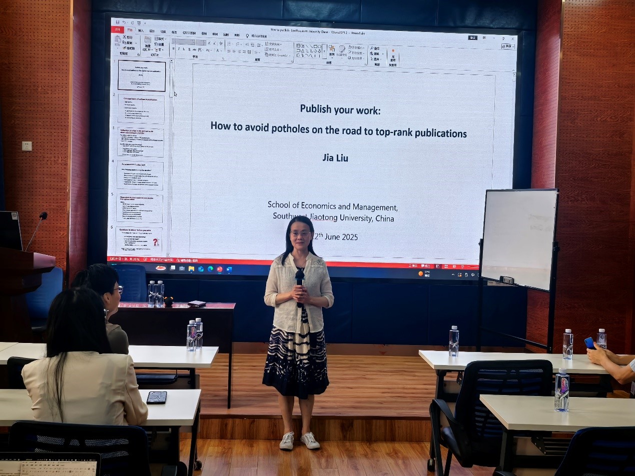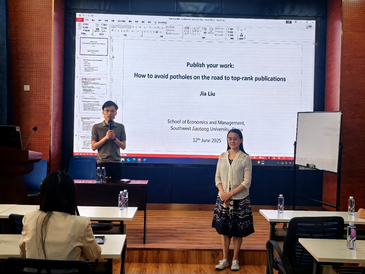2025年6月12日下午,英国朴茨茅斯大学商学院会计与金融学刘嘉教授应邀为今年会官网师生作题为“How to avoid potholes on the road to publication”的学术讲座。本次活动由今年会副院长马锋教授主持,学院部分教师及研究生参加了此次讲座。马锋副院长简要介绍了刘嘉教授的学术背景与研究成就,并代表学院对刘教授的到来表示热烈欢迎与诚挚感谢。