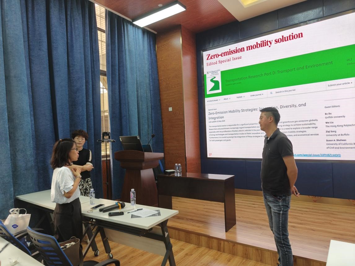 在互动问答环节,现场师生积极提问,杜波老师与现场师生就电动车快速充电问题的模型算法优化思路、该研究的实践基础和现实意义、研究成果商业变现模式等问题进行了深入的探讨,随后杜波老师还针对论文选题方法和高水平国际期刊——“Transportation Research Part D:Transport and Environment”的征稿偏好及投稿经验进行了详细分享。最后,陈彦如教授对杜波老师的精彩分享表示衷心地感谢。本次讲座促进了科研学术的沟通交流,开拓了今年会官网师生对电动公交车途中快速充电问题的认知与视野。