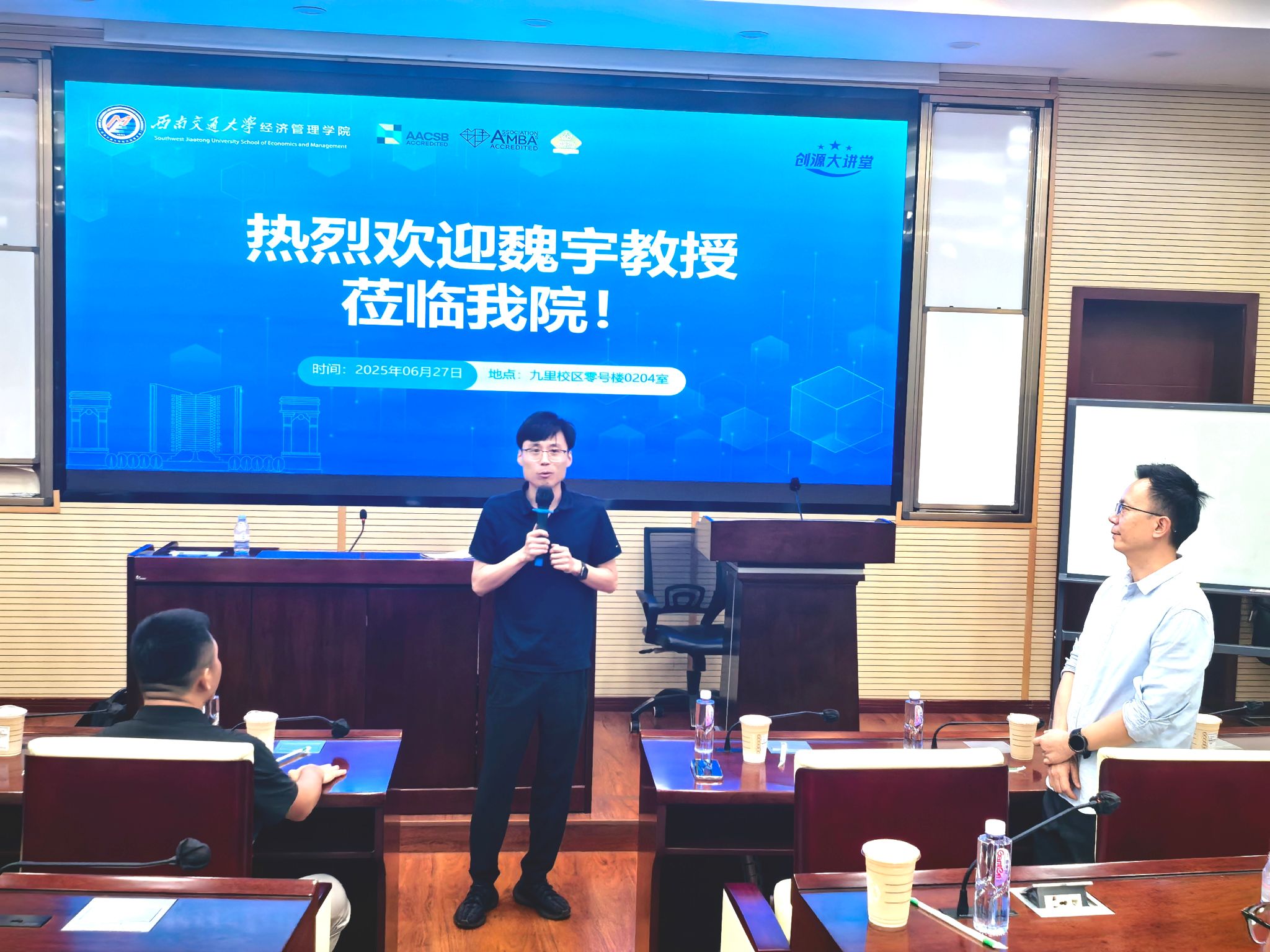 2025年6月27日下午2点,学院特邀云南财经大学金融学院魏宇教授为今年会官网师生带来了一场题为“Are brown stocks valuable for green stocks? Evidence from China”的学术讲座。本次学术活动由今年会副院长马锋教授主持,学院部分教师及研究生参加了此次活动。马锋副院长介绍了魏宇教授的学术背景与成就,并代表学院对魏宇教授表示热烈的欢迎与诚挚的感谢。