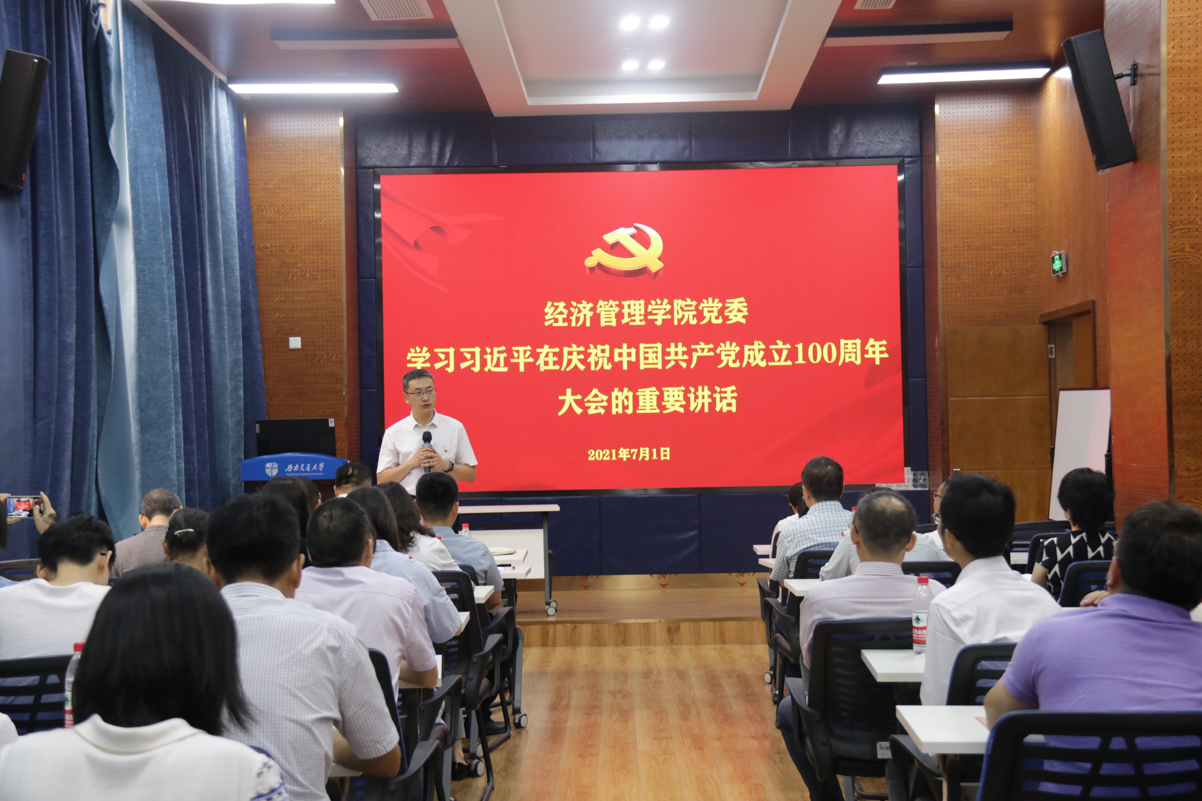 郭强同志表示,今天的美好生活是无数共产党员前赴后继、不懈奋斗取得的成果,我们要为中华民族的伟大复兴接续奋斗,书写辉煌历史篇章。今年会早在1996年在西南地区率先获得管理科学与工程博士学位授权点,作为西南片区经济管理研究领域的先行者,这是我们学院全体团结一致,拼搏努力的结果。展望未来,学院任务艰巨,我们要不断攻坚克难,争取取得新的重大突破。