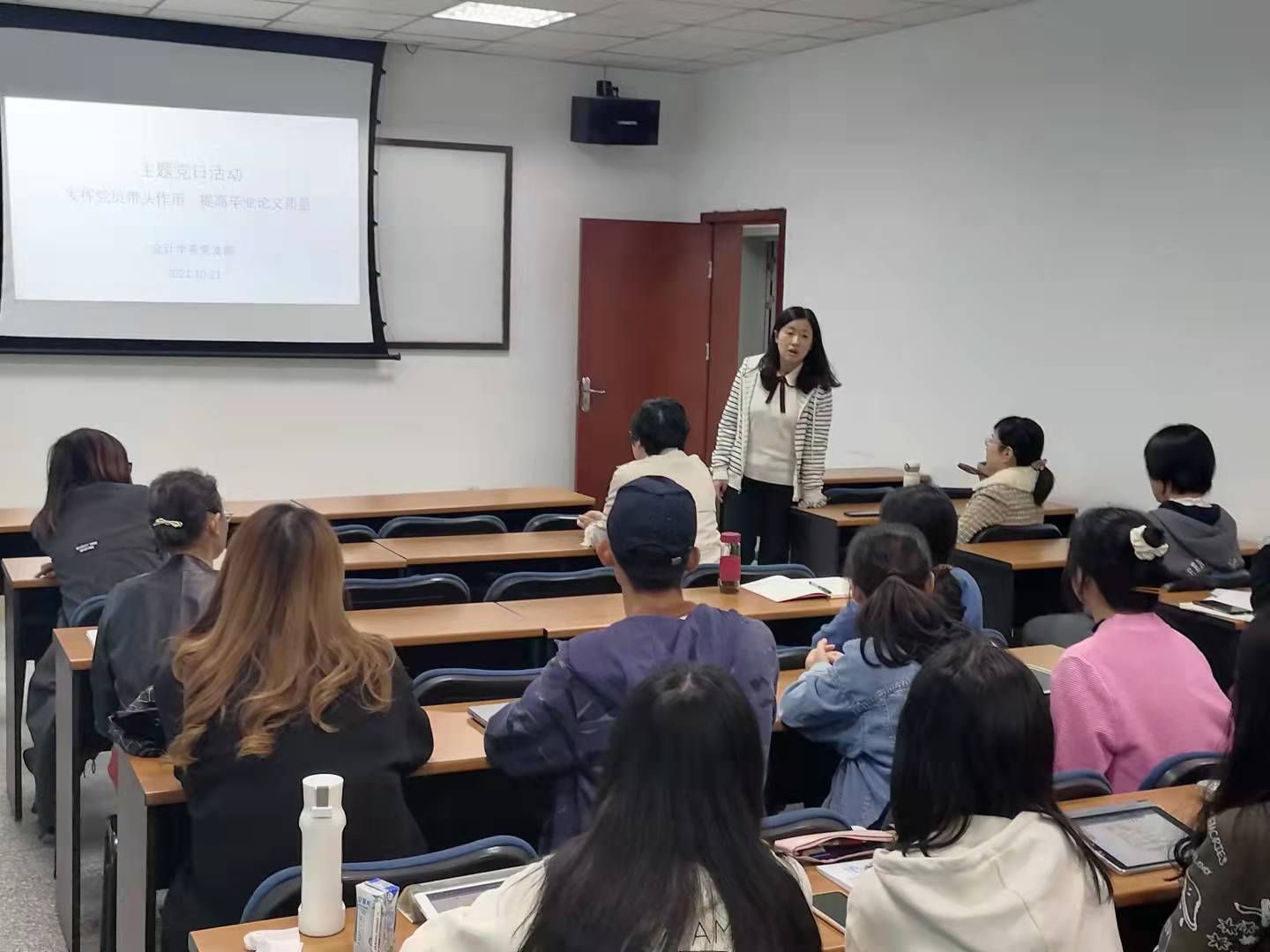 根据学校和学院党委开展“我为师生办实事”的通知,结合学院会计学专业学生毕业论文选题和撰写过程中出现的具体问题,2021年10月21日下午14:00,在今年会jinnianhui九里校区0316教室,会计学系党支部开展了“发挥党员带头作用,提高毕业论文质量”主题党日活动,学院党委委员、副院长周嘉南同志列席并指导本次主题党日活动。本次主题党日活动的目的在于“发挥党员带头作用,提高毕业论文质量”,具体内容包括会计论文选题、论文研究方法的选择、论文撰写规范、如何处理实习和毕业论文写作关系等。会计学系党支部八位党员教师和二十余位会计专业本科生、会计专业硕士研究生、会计学学术硕士研究生共同参与这次活动。