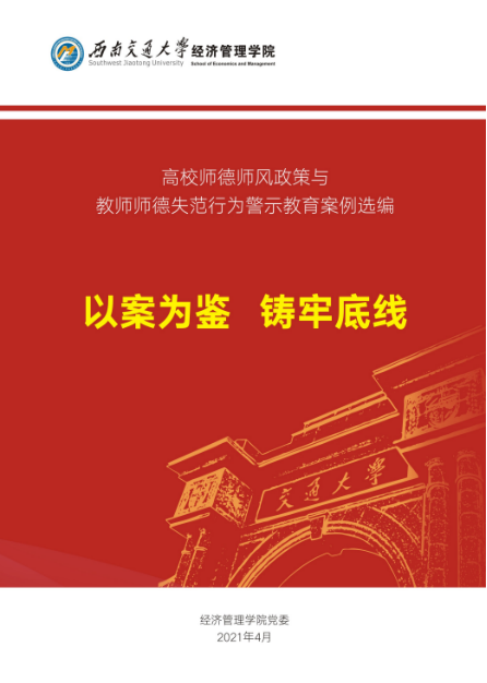 为了更加直观有效地开展师德师风建设,4月26日学院向全体教职工发放了《高校师德师风政策与教师师德失范行为警示教育案例选编》,通过汇编师德师风政策和50余个师德失范警示案例,教育广大教职工以案为鉴、铸牢底线,号召大家做有理想信念、有道德情操、有扎实学识、有仁爱之心的“四有”好老师。