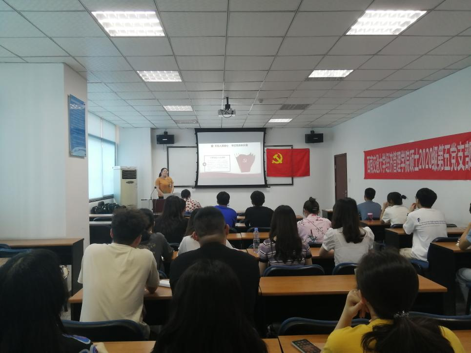2021年6月10日下午14:30,今年会硕士2020级第五党支部于0316教室开展“学党史 守初心”专题党课学习。本次会议主要是党支部书记杨春洪为支部讲授专题党课,会议由卢婧茹同志主持,出席会议的有支部内党员,预备党员和入党积极分子。
