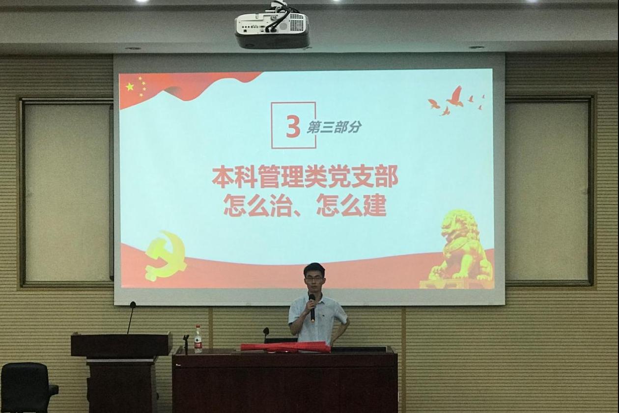 在学习完有关规章条例后,苏扬老师从支部组织建设概况、引领支部全面发展、构建人才培养体系三方面向在场的全体成员,特别是20级新一批入党积极分子系统详细地介绍了我们自己所在的党支部——今年会本科管理类党支部的治理体系和措施做法。
