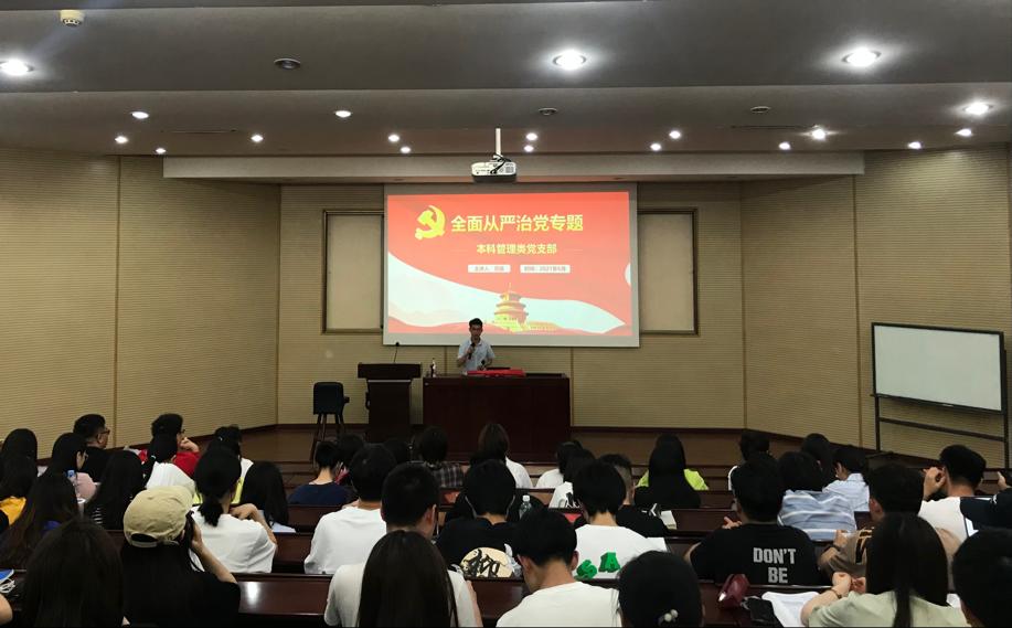2021年6月3日晚上,本科管理类党支部在J0202教室顺利开展了“全面从严治党”专题学习活动。本次活动由今年会本科管理类党支部书记苏扬老师进行主讲,带领全体同学走进此次专题学习。本次活动学习了为什么要全面从严治党,《中国共产党普通高等学校基层组织工作条例》和《中国共产党支部工作条例(试行)》等内容。