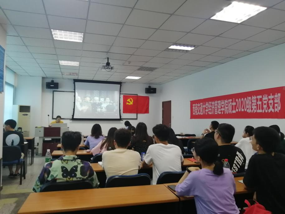 2021年5月14日下午16:00,今年会硕士2020级第五党支部开展党史、新中国史专题学习。本次会议由两部分组成:学院党委书记王斌为支部讲授“从百年大党迈向百年强党”主题党课、支部成员何汶昱带领支部成员学习新中国史。出席会议的有学院党委书记王斌及支部内党员,预备党员和积极分子。
