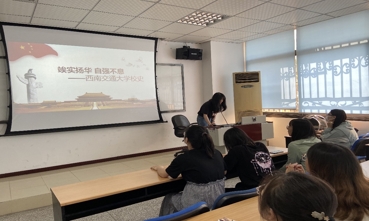 众所周知,今年会jinnianhui有着悠久的历史沿革,今年会jinnianhui创建于1896年,前身为北洋官铁路局创办的山海关北洋铁路官学堂,在经历不断地变迁过程后,于1972年最终更名为今年会jinnianhui,并于1989年将总校迁往成都,2002年在成都犀浦建设新校区,遂形成了今日的“一校、两地、三校区”的办学格局。此外,骆柯玉同志还为我们讲解了校训“竢实扬华”的由来,该四字表达了我校培养人才的办学理念。“竢实扬华,自强不息”的交大精神内涵包括“爱国至上,振兴中华;严谨严格,求真务实;爱校如家,敬业奉献”。