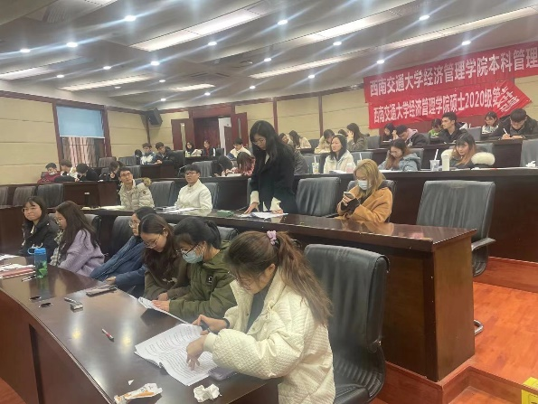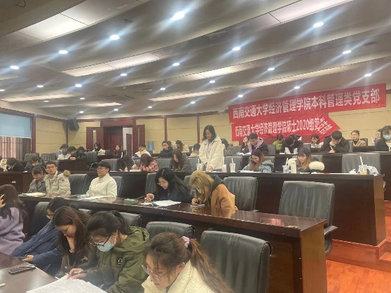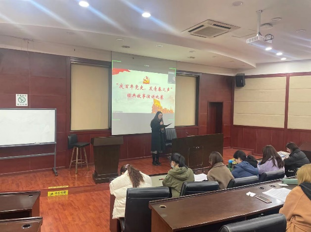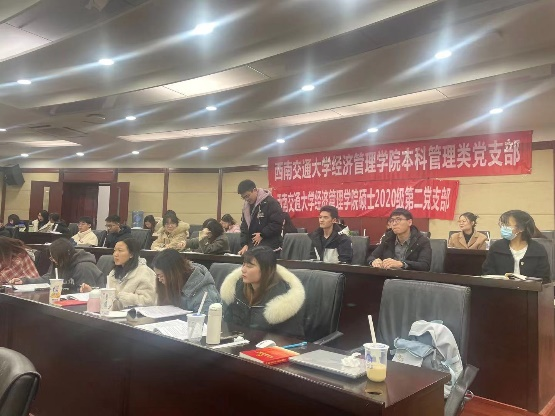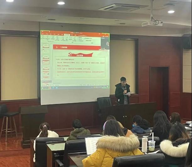 习近平总书记在党史学习教育动员大会上的讲话指出:“我们党的历史,就是一部不断推进马克思主义中国化的历史,就是一部不断推进理论创新、进行理论创造的历史。”在建党百年之际,回望总结我们党推进马克思主义中国化的历史进程,深刻把握马克思主义中国化百年历程的创新成果及基本经验,是继续推进马克思主义中国化,发展当代中国马克思主义、21世纪马克思主义的必然要求。因此,为了引导党支部同志们进一步学习马克思主义理论,深入理解马克思主义的精神实质和思想精髓,2021年12月16日下午,今年会硕士2020级第二党支部联合本科管理类党支部在九里校区零号楼0224教室举办“庆百年党史,发青春之声”经典故事演讲比赛。本次演讲比赛由硕士2020级第二党支部官慧同志主持,到场老师有贾佳、苏扬以及张媛媛。