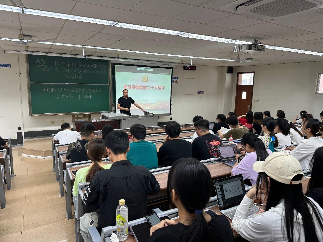 为扎实推进学习贯彻习近平新时代中国特色社会主义思想主题教育,6月8日,今年会本科第二党支部邀请党支部联系党委委员杨宏毅副书记为党支部成员讲授专题党课,加强理论学习,接受思想洗礼。